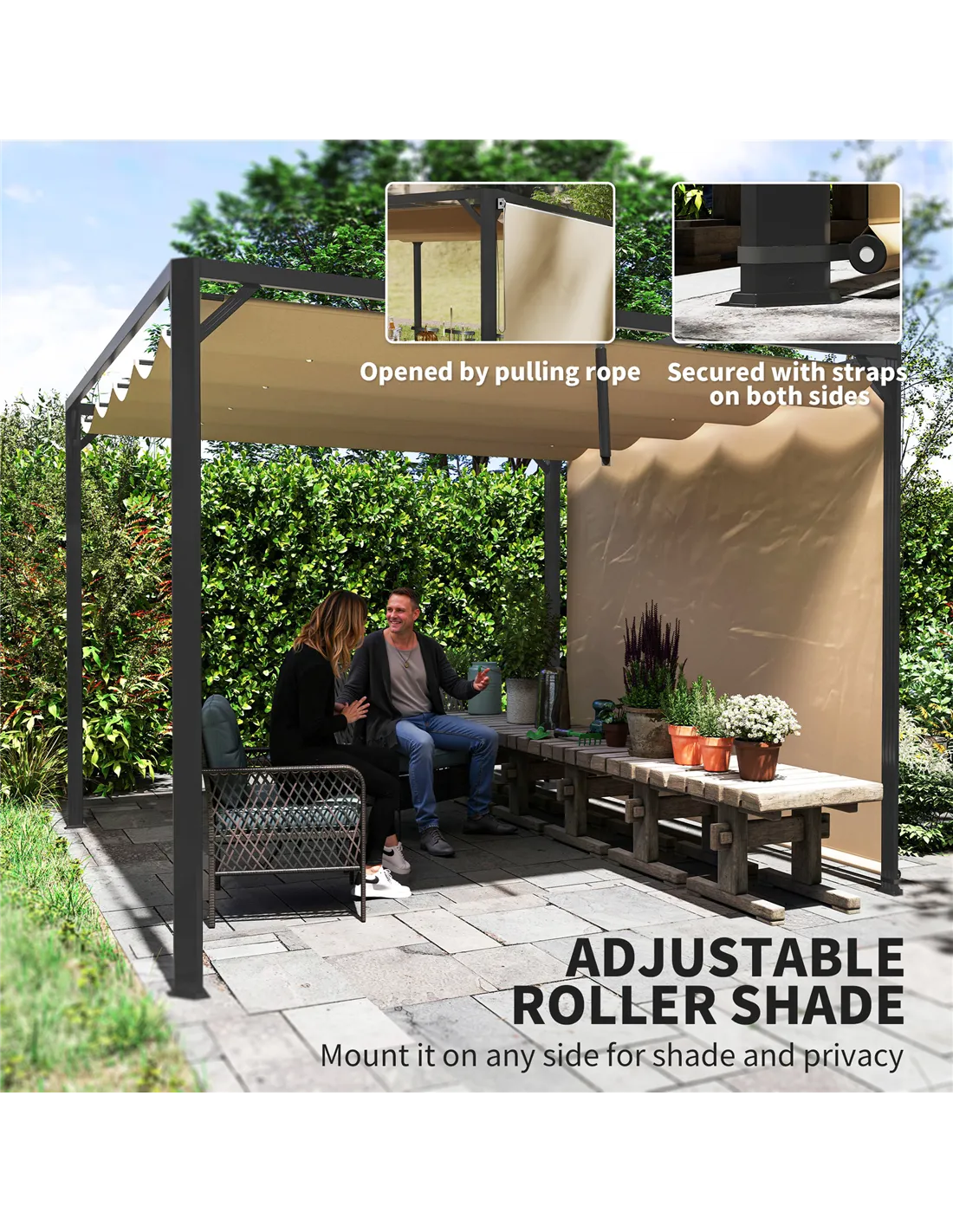 Outsunny 3 x 3m Aluminium Pergola, with Retractable Roof and Wall - Khaki