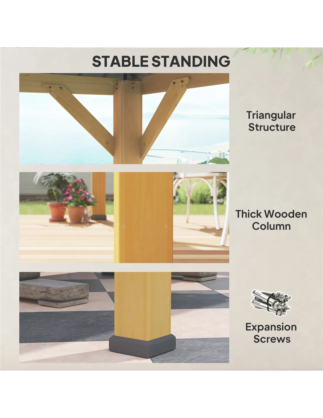 Outsunny 3x(3)M Outdoor Hardtop Gazebo Canopy with 2-Tier Roof and Solid Wood Frame, Outdoor Patio Shelter for Patio, Garden, Grey