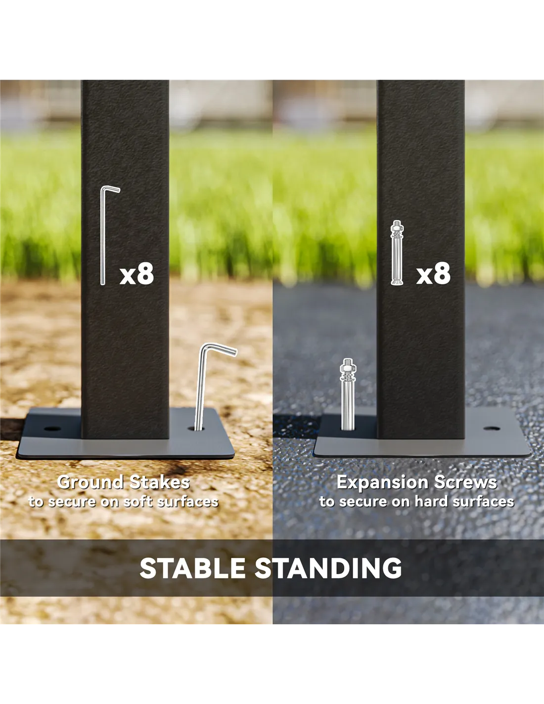 - Secure patio gazebo with stakes or screws for added stability