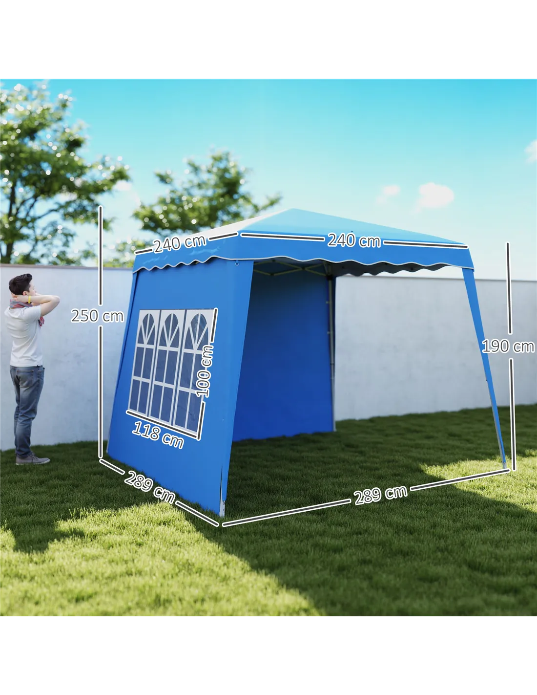 Outsunny 2.4 x 2.4m Two Wall Pop Up Gazebo - Blue
