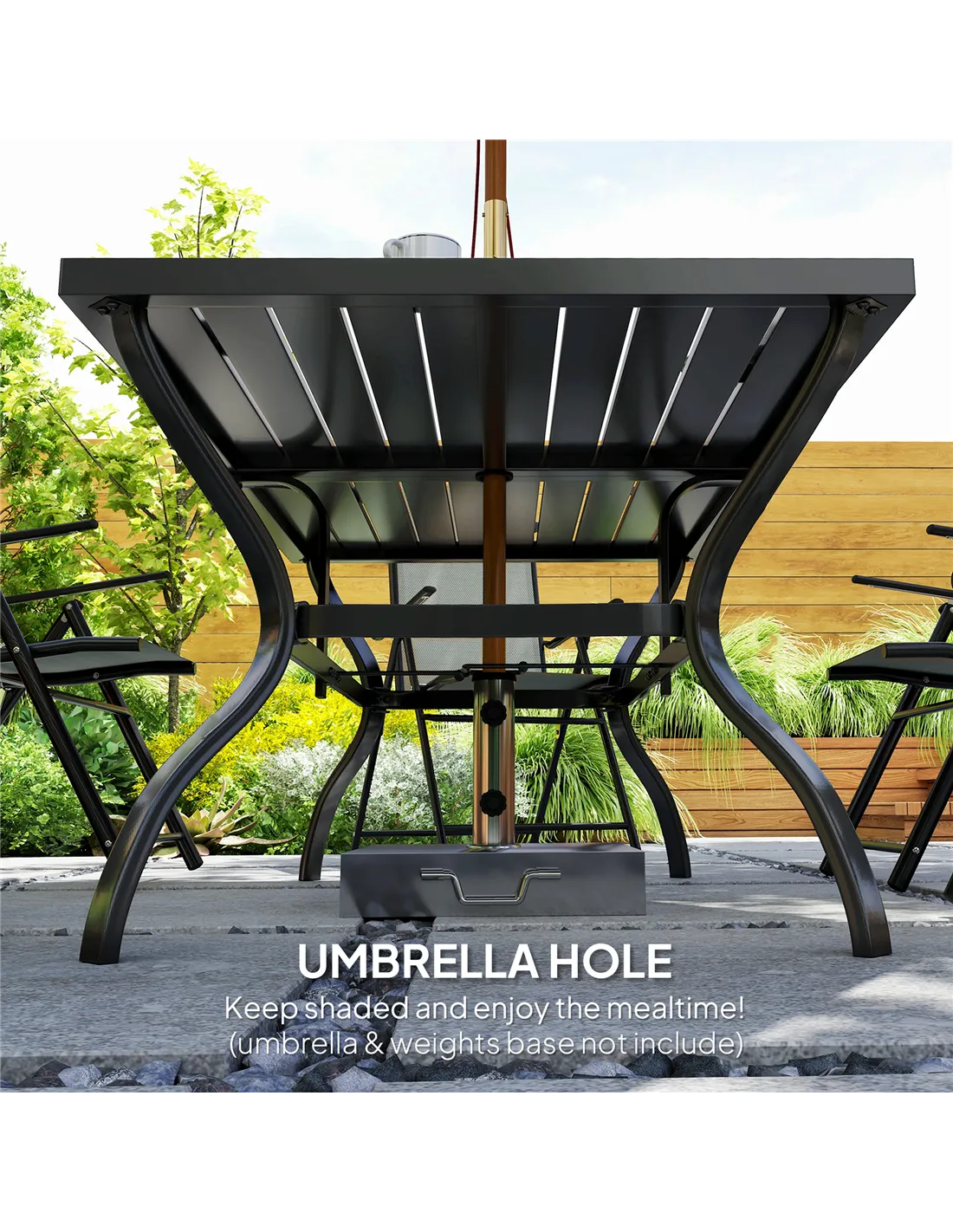 - Perfect for hosting summer barbecues or afternoon tea, with the parasol hole allowing easy installation of an umbrella for shade on sunny days.