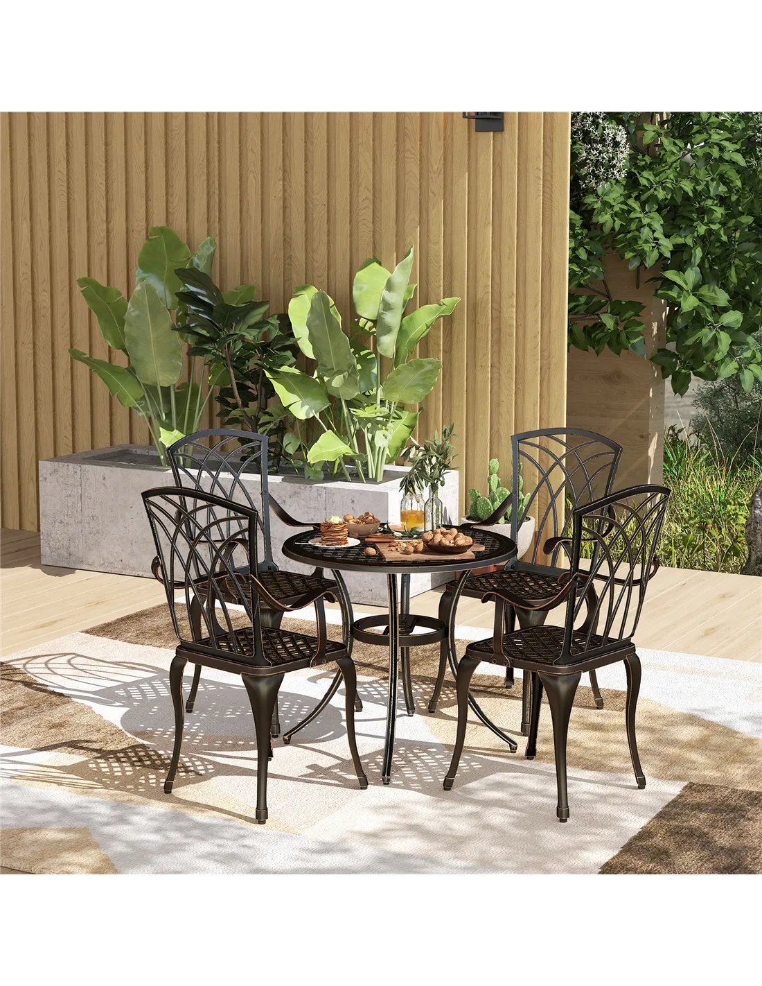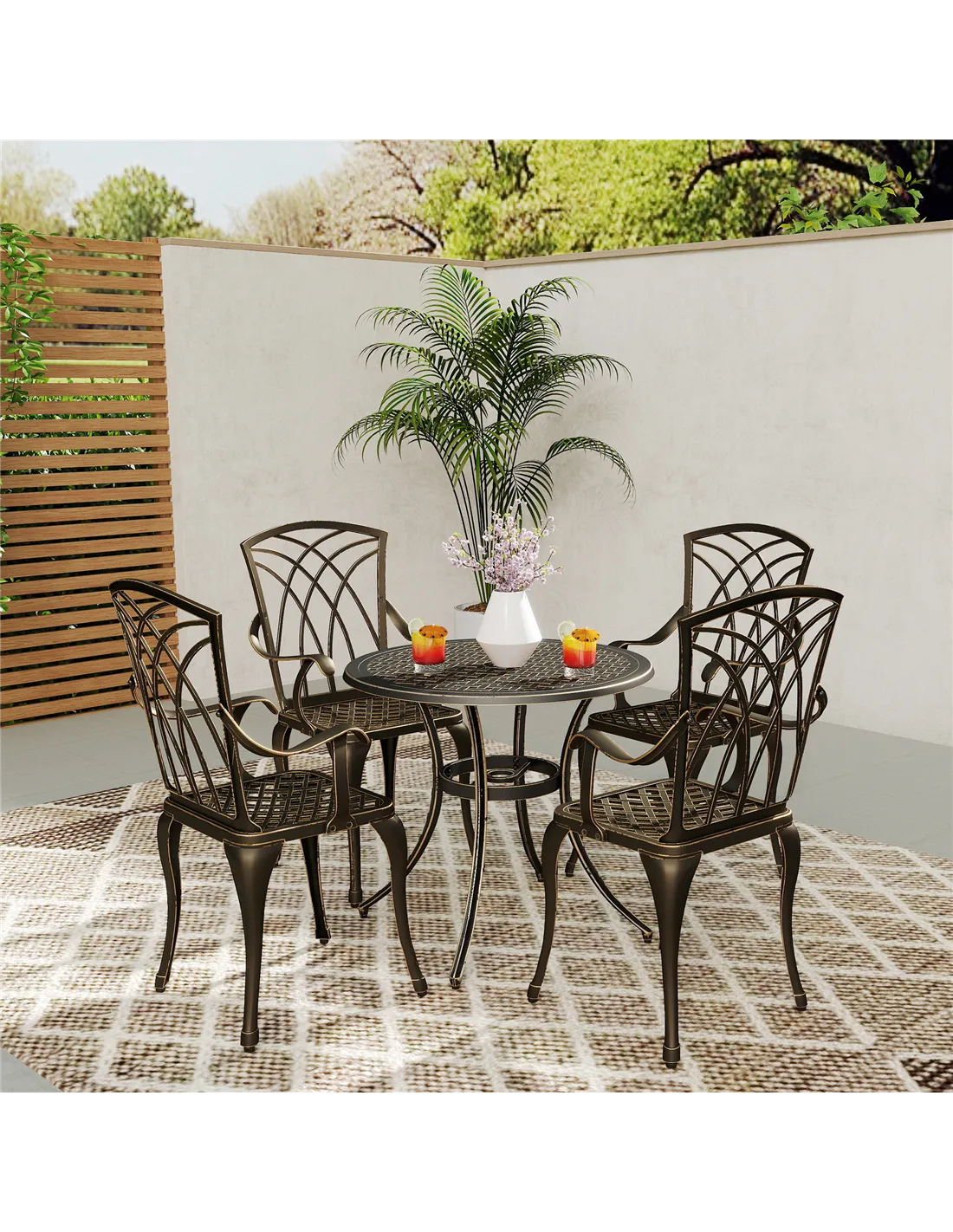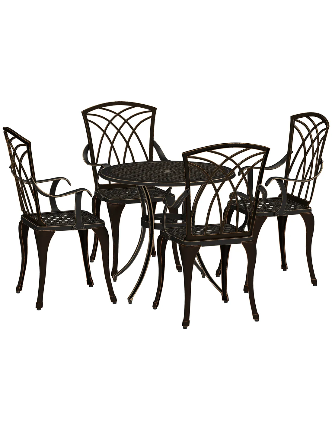 Outsunny 5 Pieces Garden Dining Set for 4, Cast Aluminium Outdoor Dining Set with 4 Armchairs and Round Dining Table with Parasol Hole, Garden Furniture Set, Bronze Tone