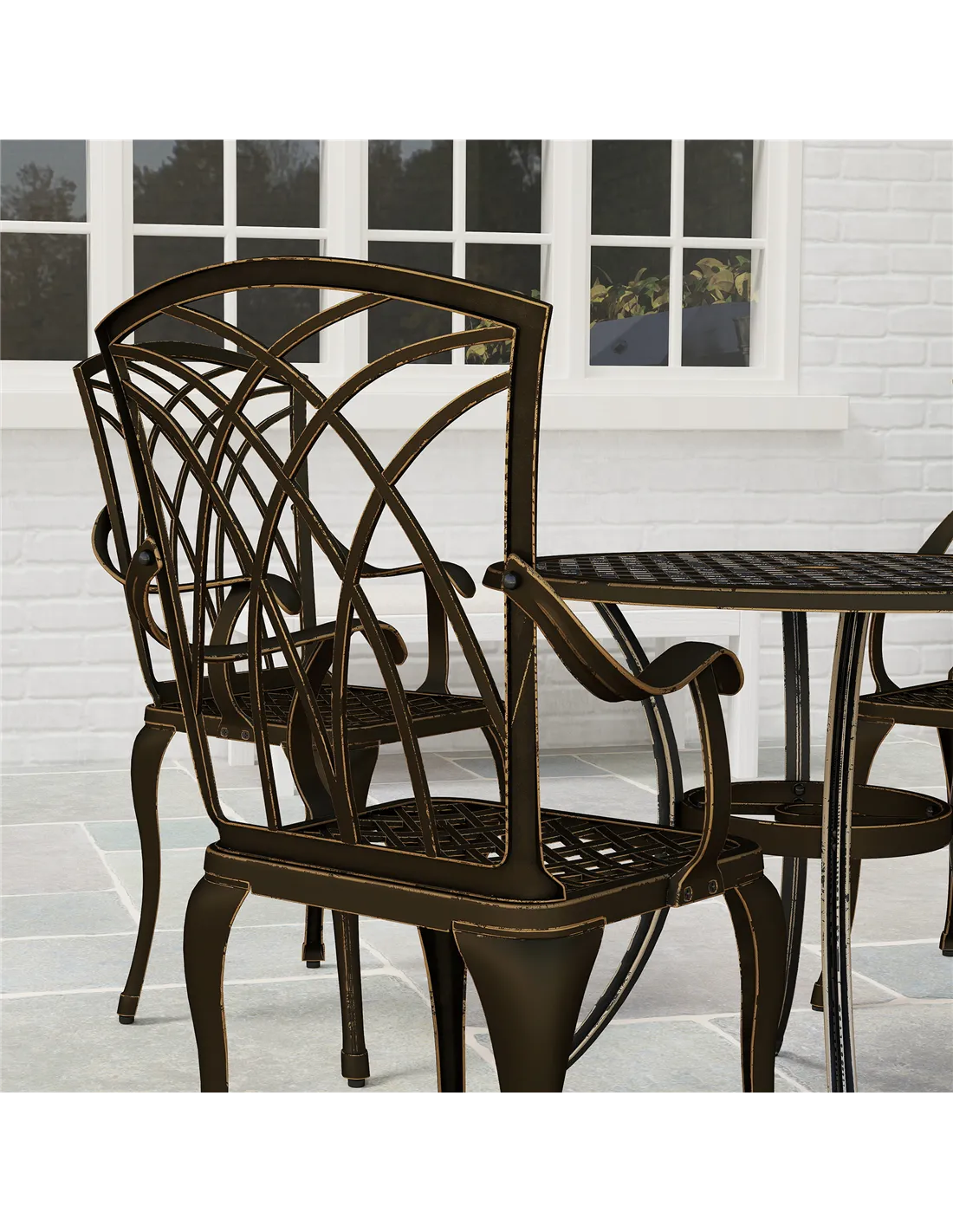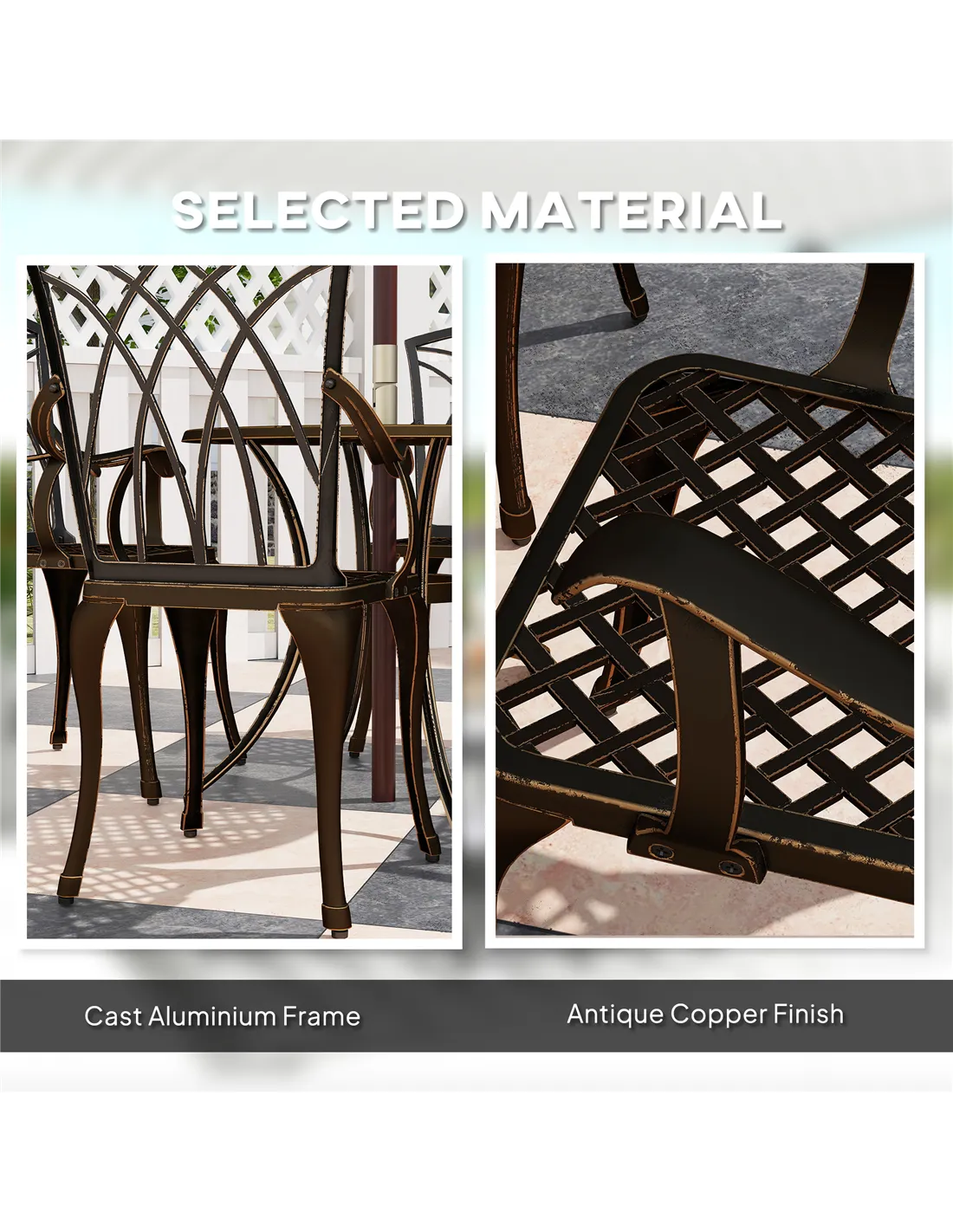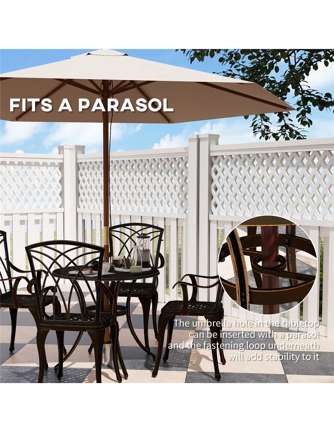 Outsunny 5 Pieces Garden Dining Set for 4, Cast Aluminium Outdoor Dining Set with 4 Armchairs and Round Dining Table with Parasol Hole, Garden Furniture Set, Bronze Tone