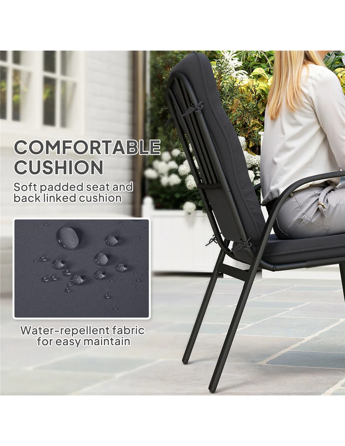 Enjoy your socialising time outdoors comfortably - look to this garden table and chairs set from Outsunny. Comes with four padded armchairs and a tempered glass-top table. Steel frames make each piece strong. High backs and armrests on the chairs for support, with a padded seat for comfort. The table is fitted with a tempered glass tabletop - comes with a middle hole to hold a parasol umbrella in place (Φ38 mm sized pole).