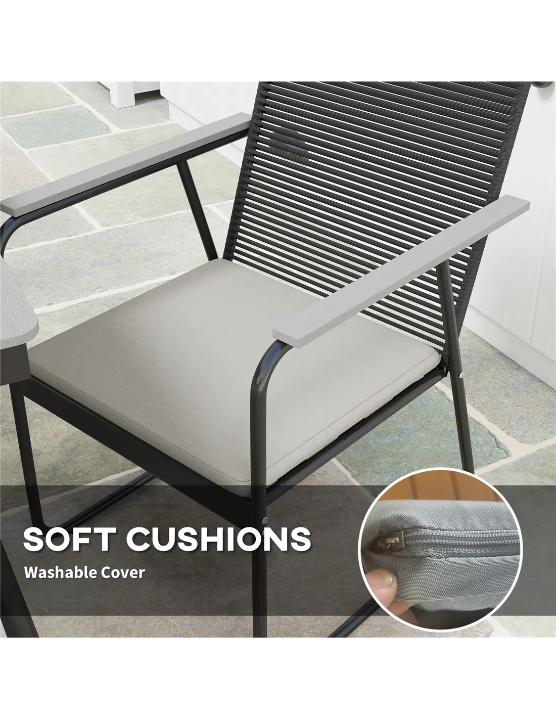 - Soft cushions included, and covers can be removed for easy cleaning