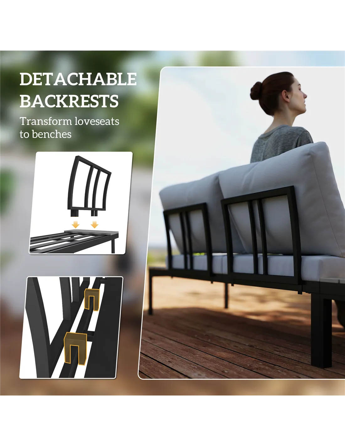 - Remove the backrest of loveseats and convert into benches