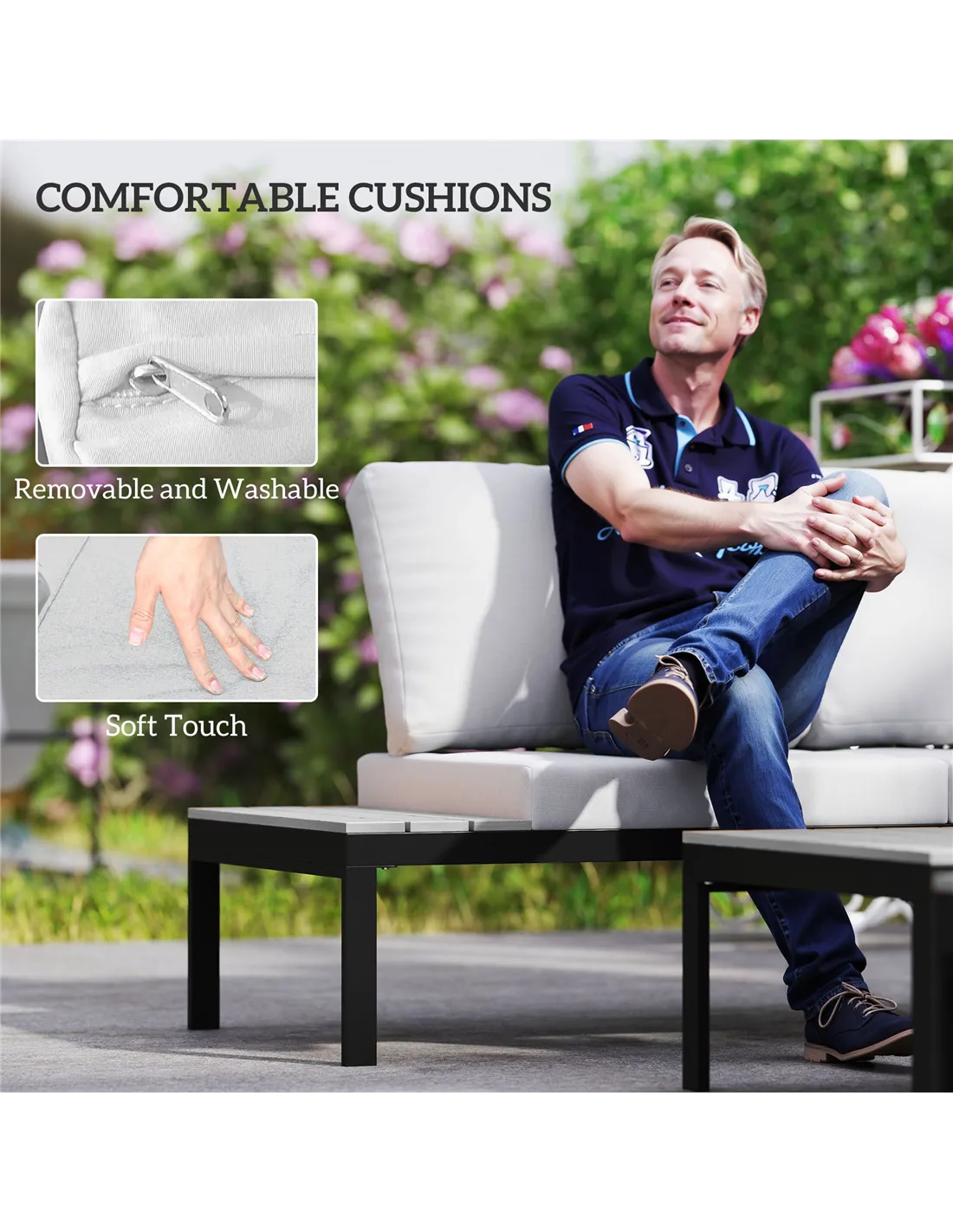 - Soft cushions provide comfort with removable covers for washable