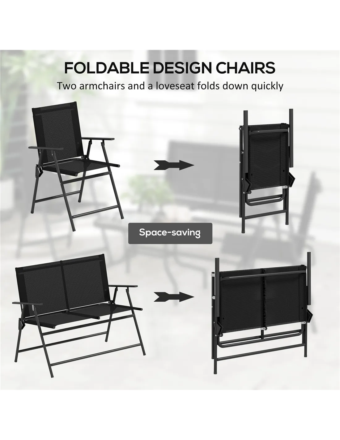 - Thanks to the foldable design of the chairs and loveseat, this set is easy to store during the colder months or when space is limited.