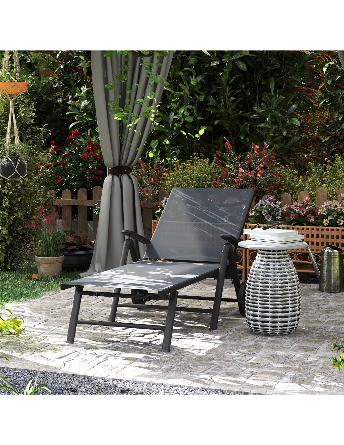 Outsunny Five-Position Reclining Sun Lounger - Grey