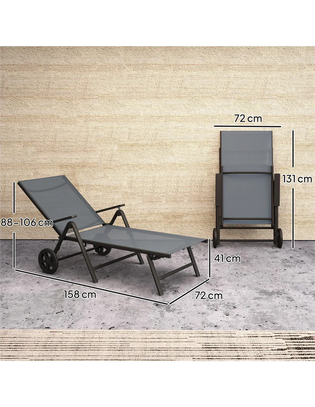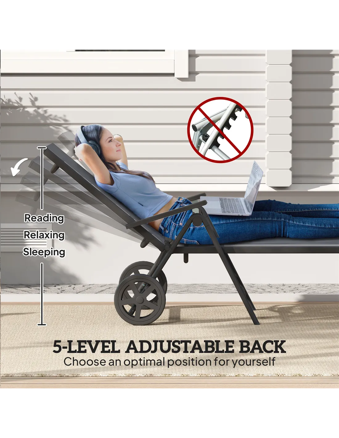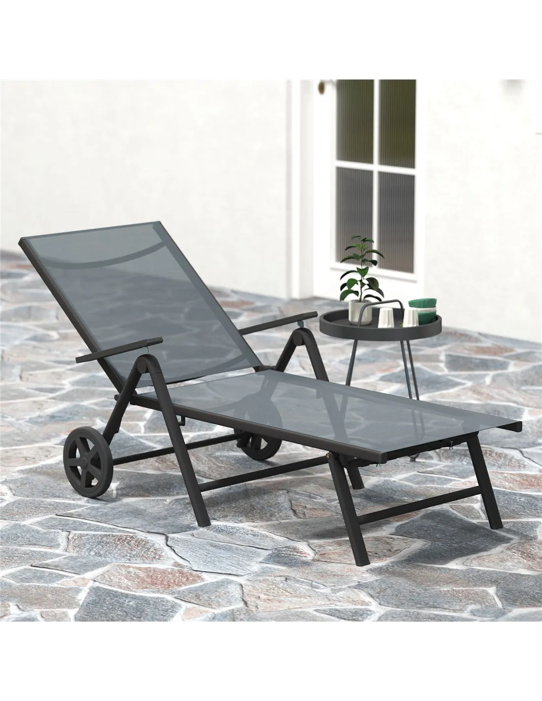 Soak up the sun in style with this Outsunny sun lounger. Our garden recliner has a five-position back - maximum 135° angle. The smooth wheels allow you to move it around easily. The water-resistant texteline mesh seat keeps you comfortable and makes it suitable for outdoor use.