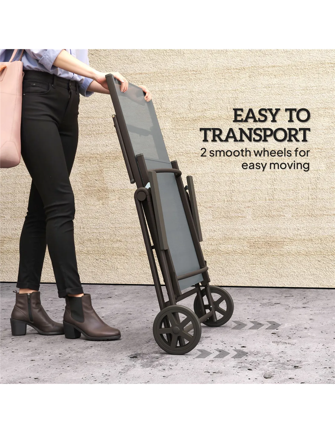 - Thanks to its foldable design and smooth wheels, it can be easily moved to catch the sun or stored away when not in use.