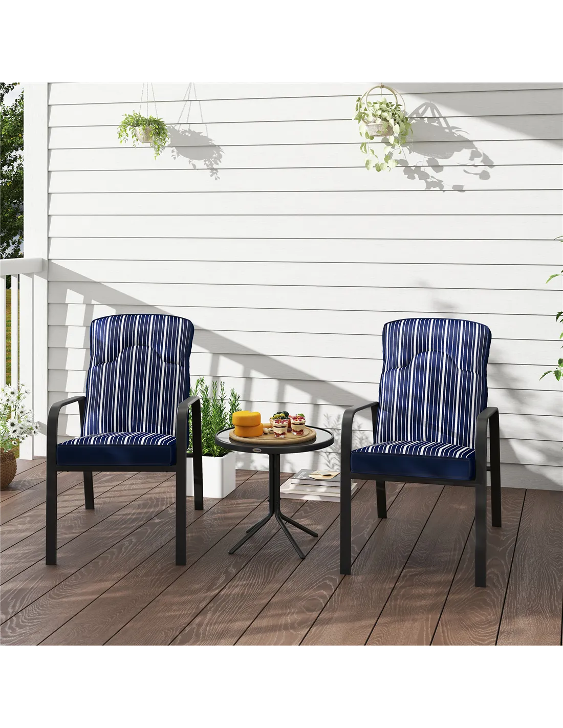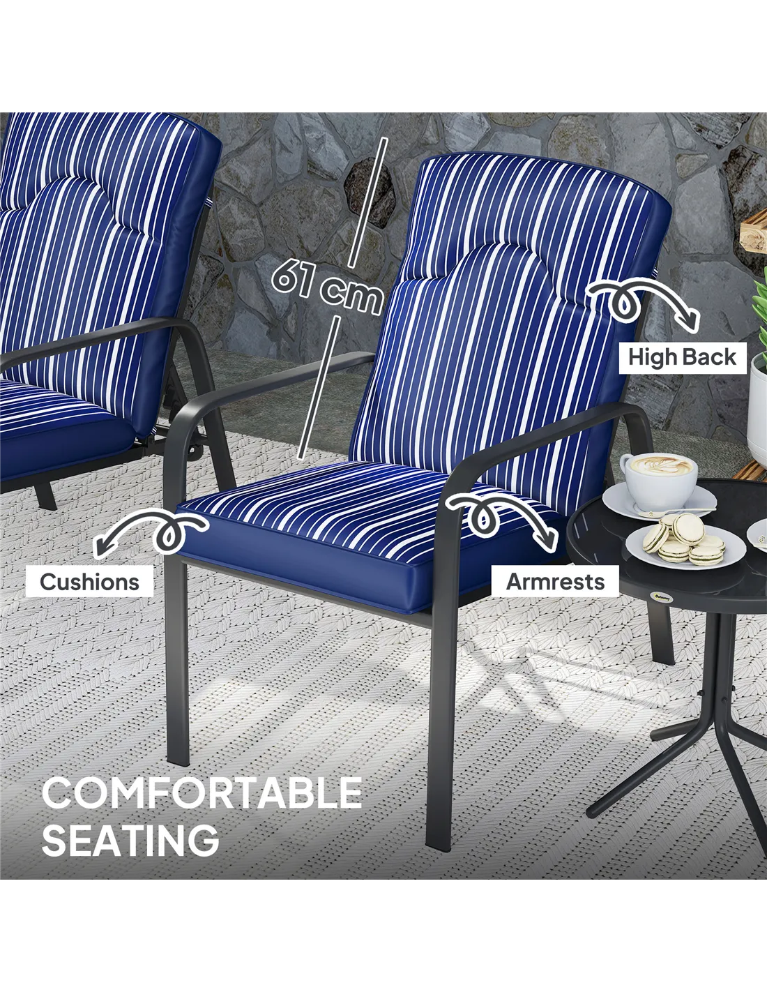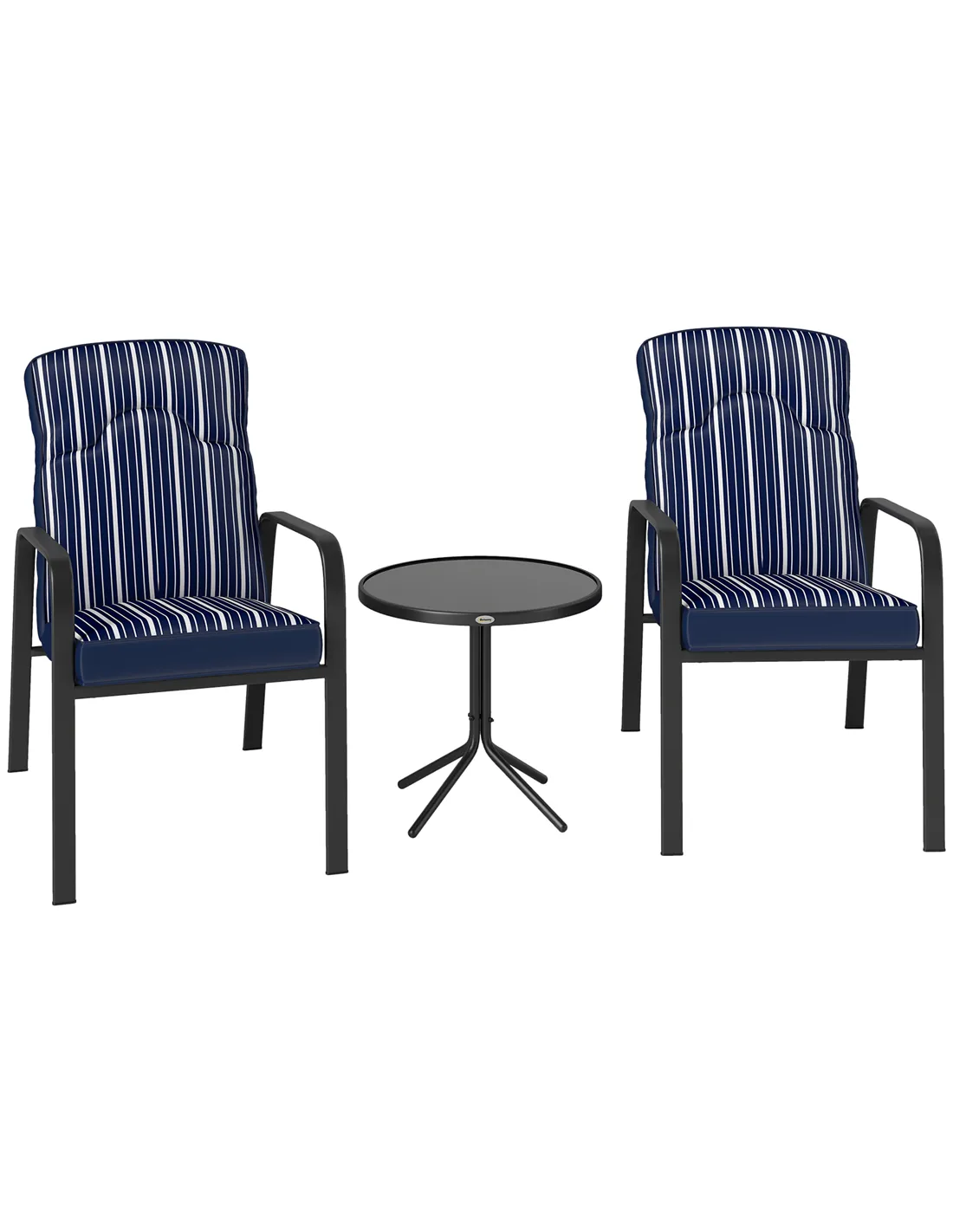 This Outsunny three-piece ensemble comes with two reclining chairs, with a tempered glass-top table. Both chair back are adjustable to five adjustable positions - pick the angle you want. All frames are made from powder-coated metal for plenty of strong support. Complete with padded seat and back cushions for comfort.
