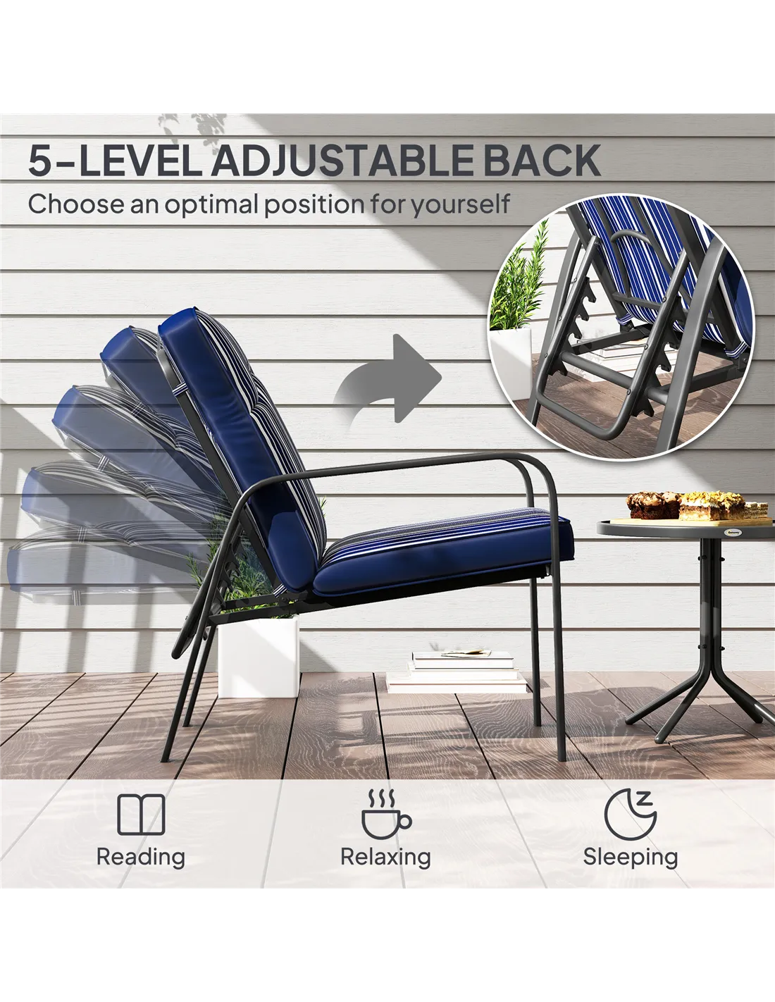 - Ideal for relaxing in your garden or patio, the set offers adjustable reclining positions to suit your preferred comfort angle.