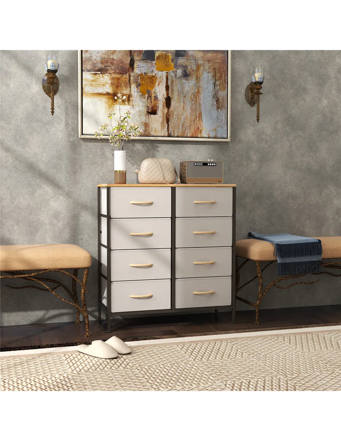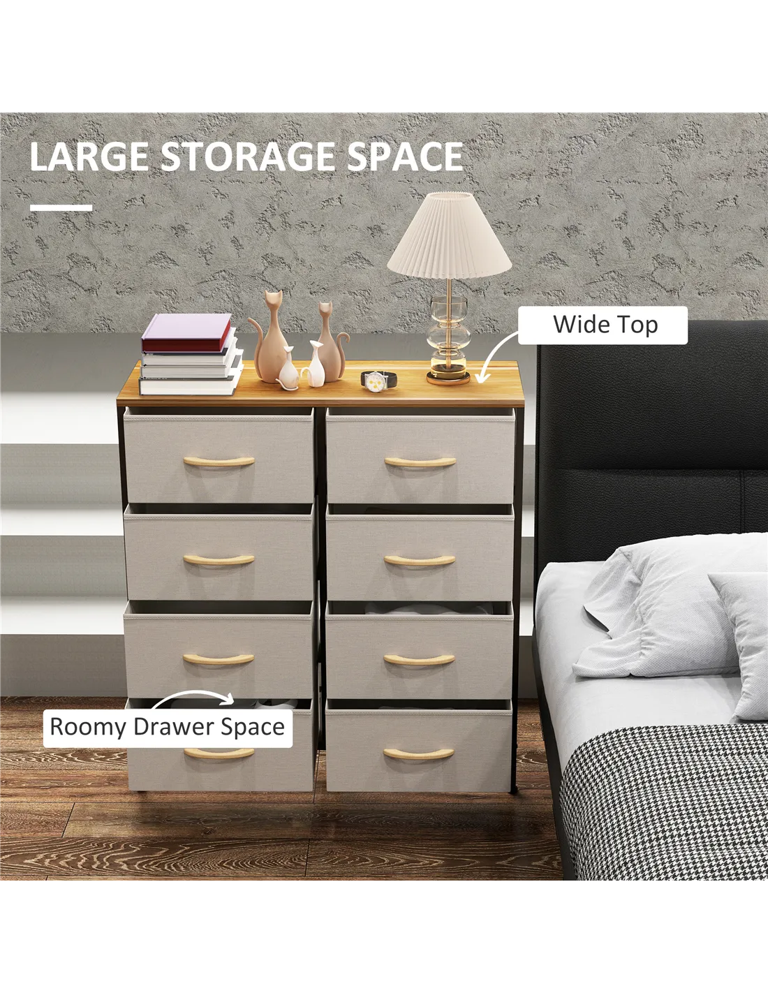 - Eight fabric drawers for plenty of holding and organising room