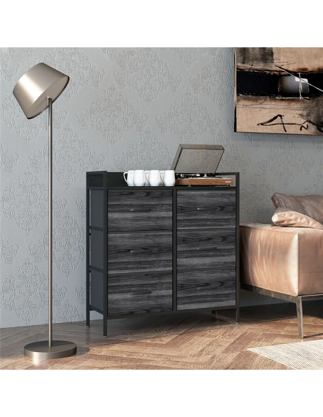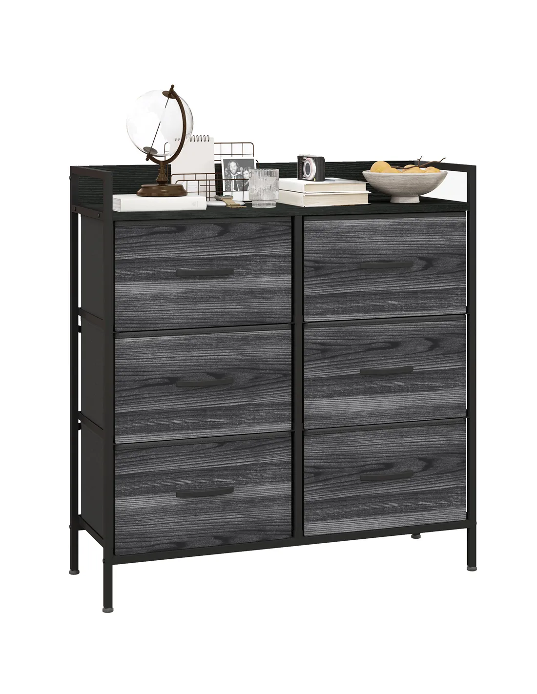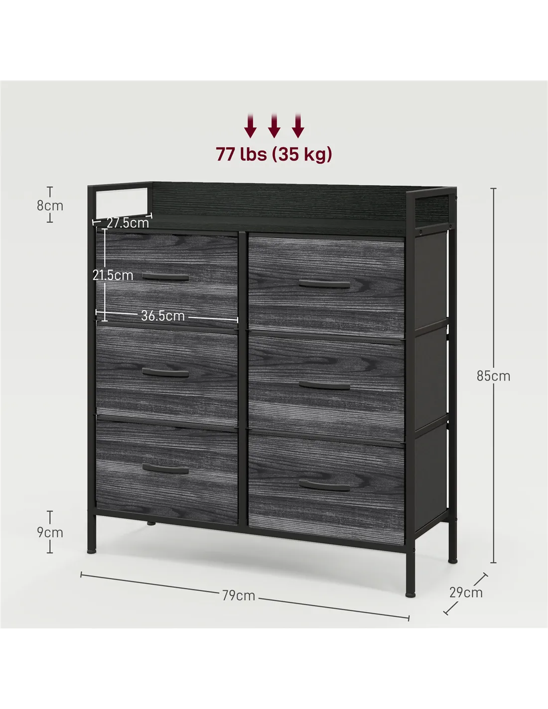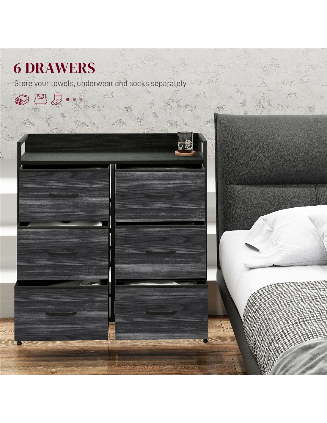 HOMCOM Rustic Chest of Six Fabric Drawers - Black