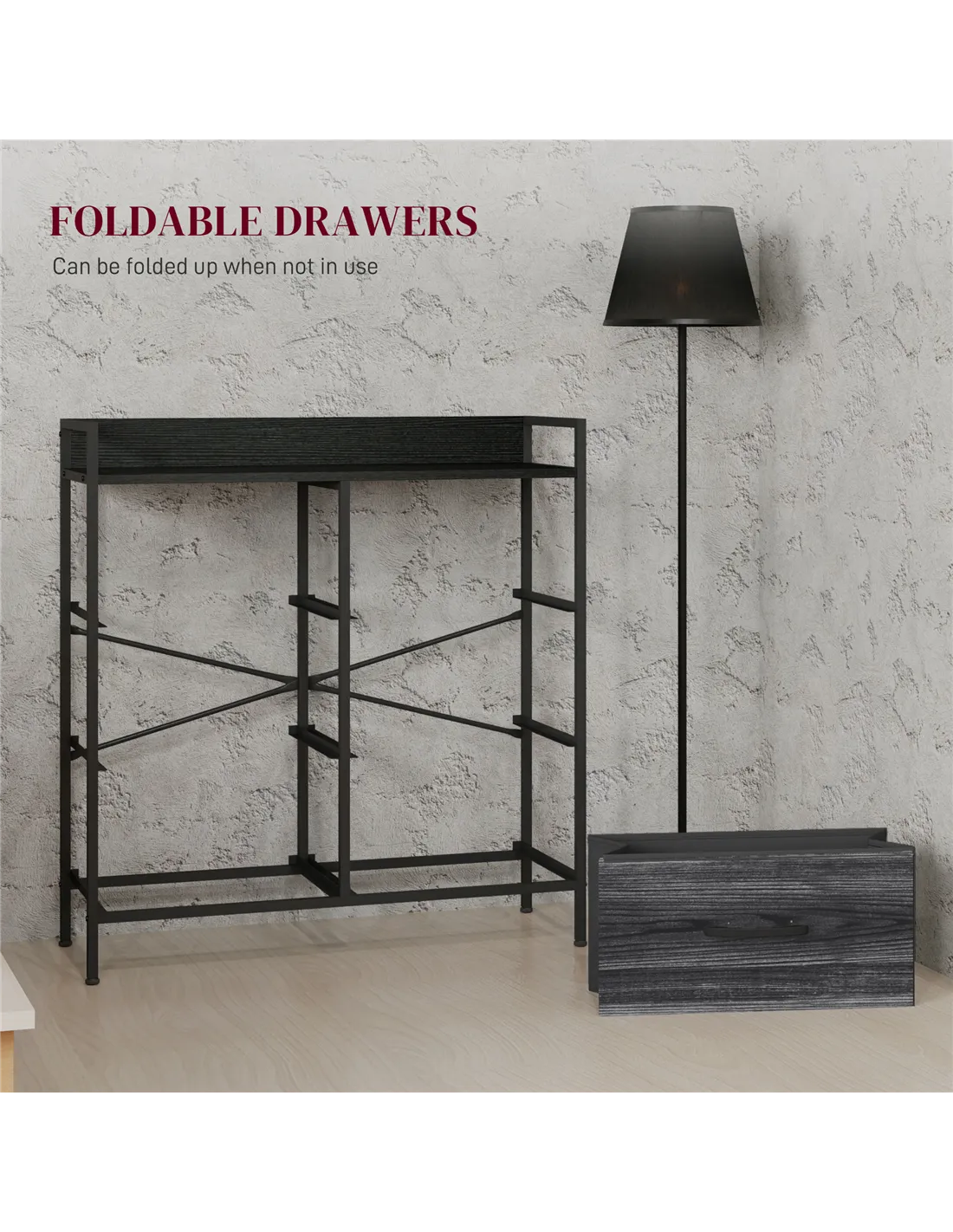 The overall weight capacity is 35kg, with each drawer supporting up to 3kg and the top shelf holding 15kg, suitable for everyday storage needs. - Can the drawers be removed or folded?