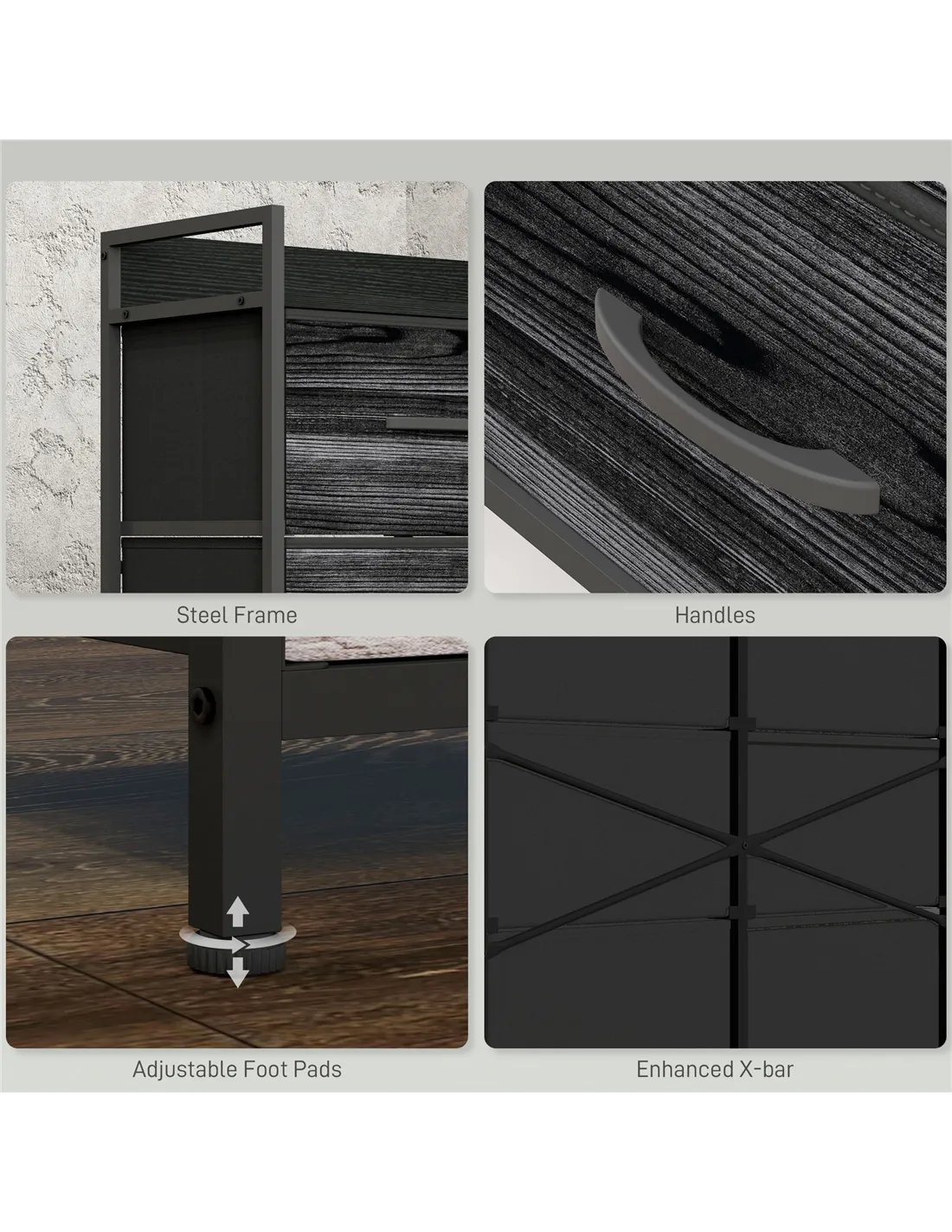 A spacious and simple approach to clothes storage, with this HOMCOM chest of drawers. It comes in industrial and rustic wood-effect design, a minimal and versatile look: it's great for plenty of different interior styles. This dresser comes with six drawers for storing and organising various garments. A powder coated steel frame for a strong core, finished with adjustable feet for balance.