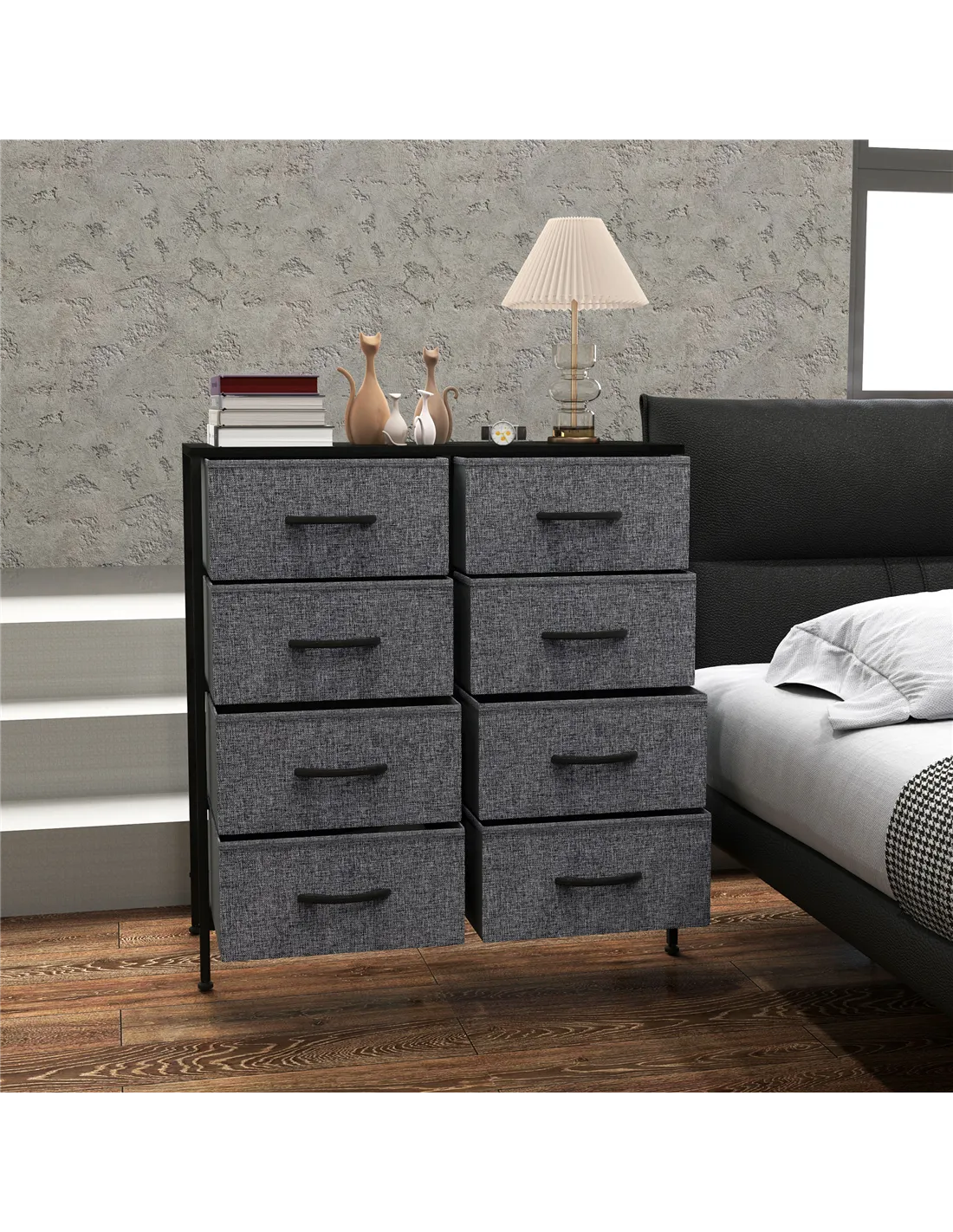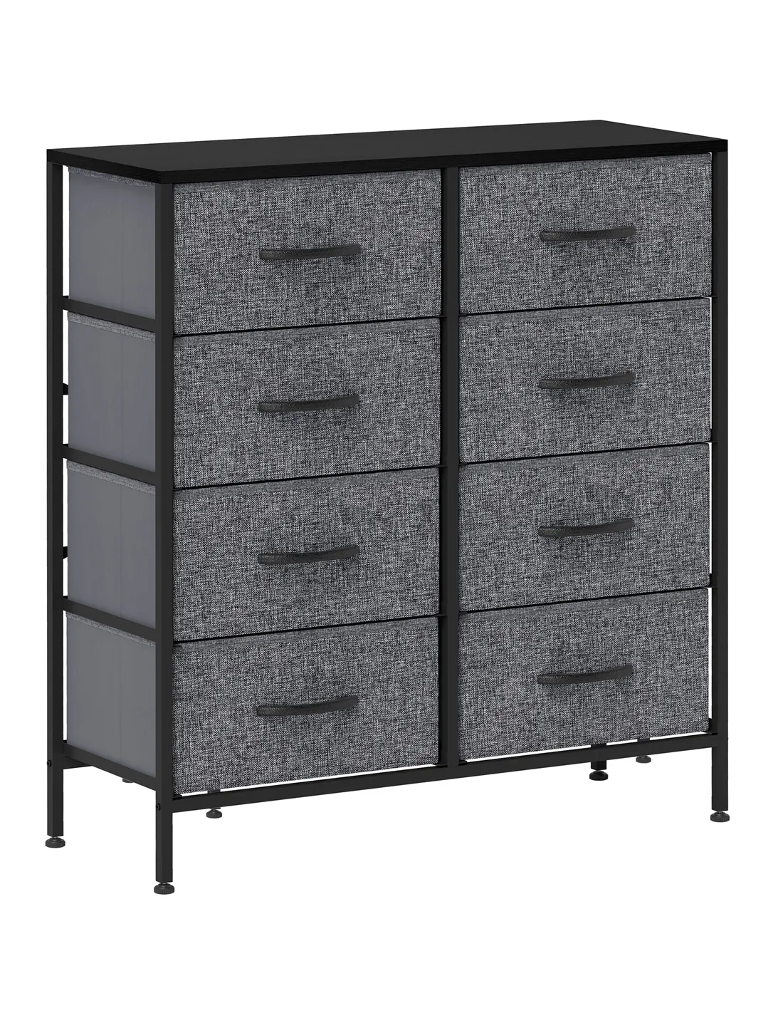 Home storage with this HOMCOM fabric chest of drawers. The eight fabric drawers offer room for lots of things - keep t-shirts, tops, bottoms and more organised. The wood-effect top offers more room: a great place to display your favourite photos. The steel frame makes a strong core, with adjustable feet for balance. Comes with anti-tipping straps for safety. Use all over the home and office.