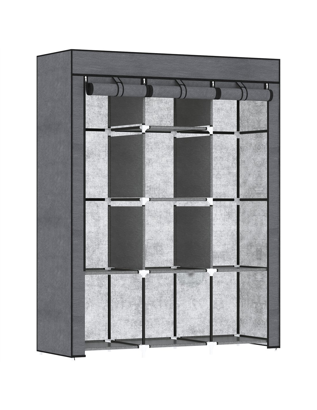 The HOMCOM fabric wardrobe is a versatile storage solution ideal for various living spaces across the UK. Perfect for temporary accommodation, student rooms, or additional storage in bedrooms and spare rooms, it helps keep clothing, towels, and linens neatly organised. Its compact design fits well in flats or smaller homes, while the dark grey fabric cover complements modern interiors. Use the two rails for hanging coats, dresses, or shirts, and the eight shelves for folded items or accessories. The raised base ensures your clothes stay dry, making it suitable for rooms with limited ventilation or occasional dampness.