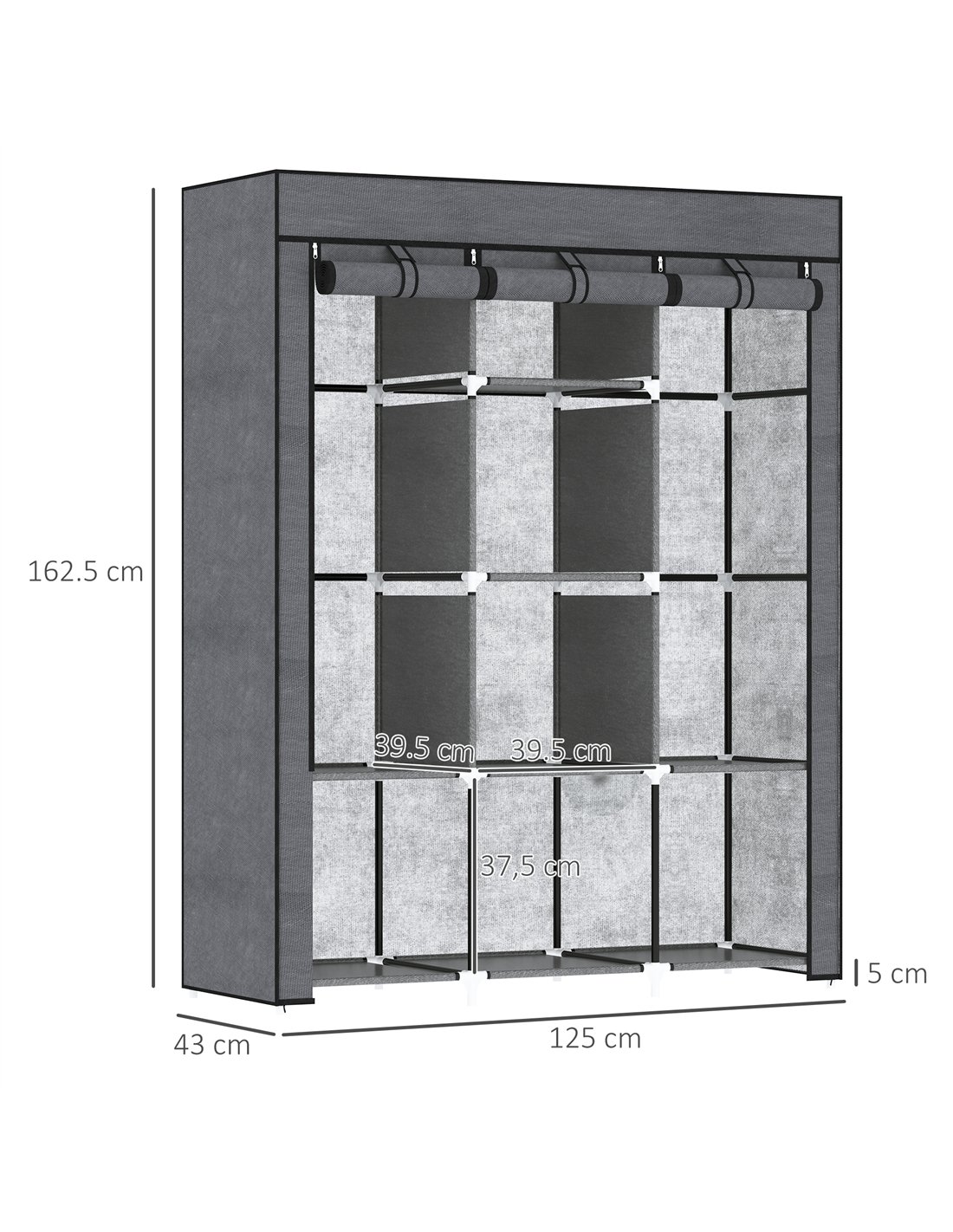 HOMCOM Fabric Wardrobe, with Rails and Shelves - Dark Grey
