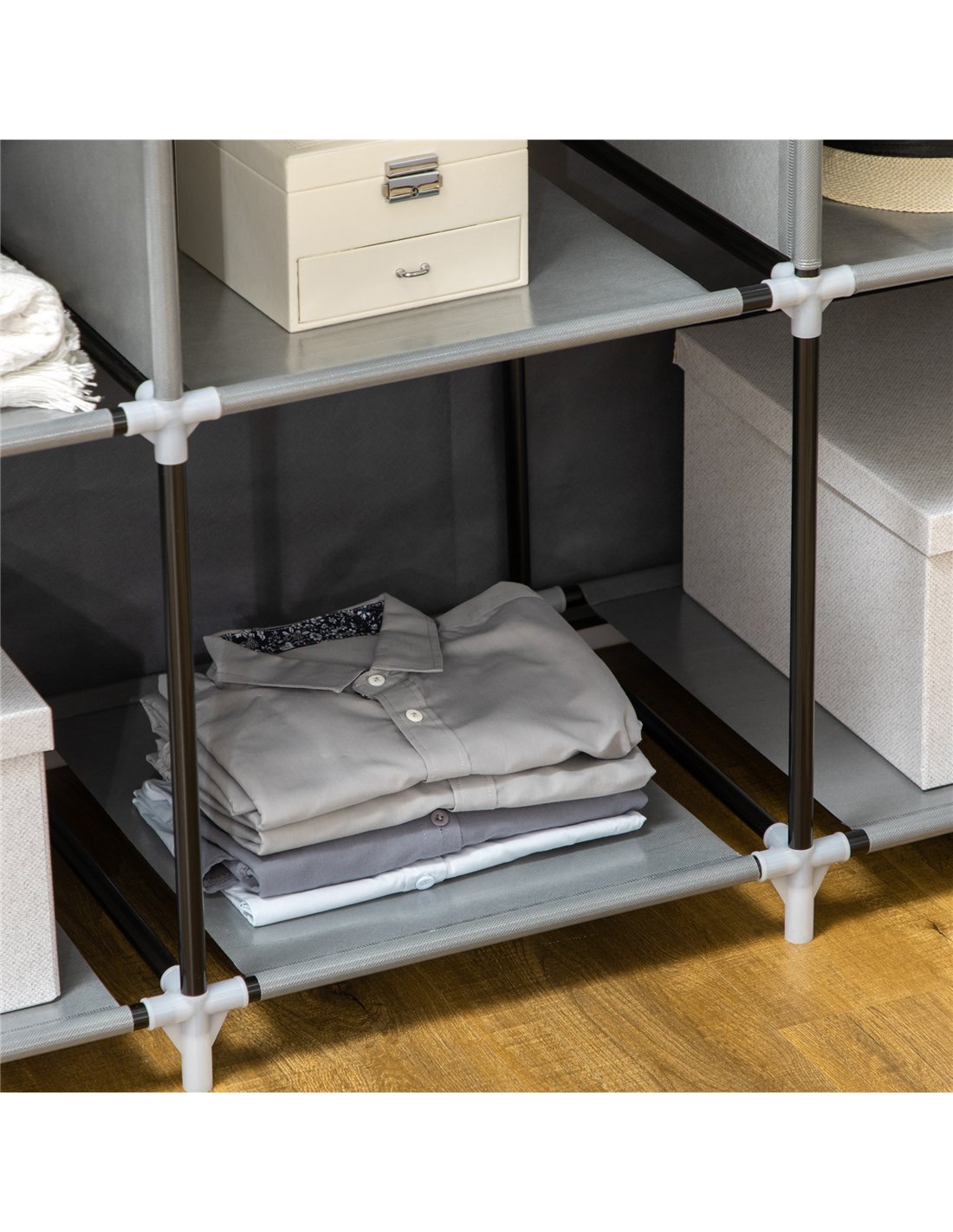 Whether temporary or permanent, this HOMCOM fabric wardrobe is for you. With two rails and eight shelves, there's plenty space for holding and organising clothes, towels and other linens. The fabric cover shields inside from dust, complete with a zipped roll-up door for easy access.