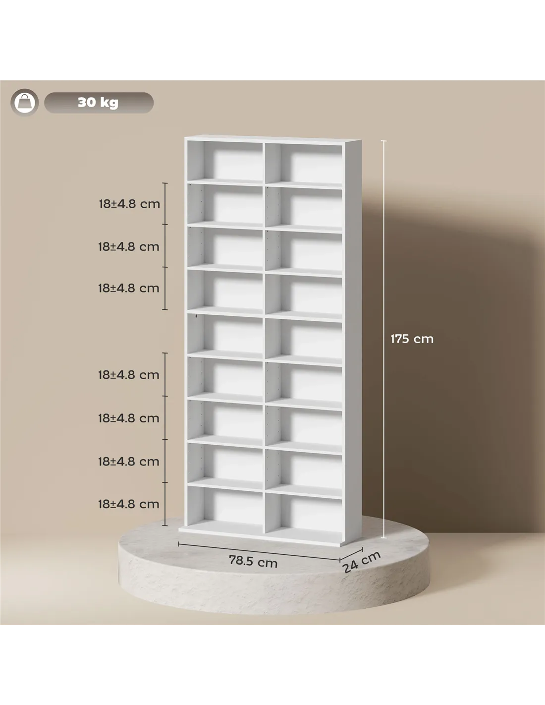 An easy and simple solution for keeping media stored, in the home and beyond - this HOMCOM storage unit. It holds up to 640 CDs, or 360 DVDs, with 14 adjustable shelves for customisable storage. The CD shelf is made from tough particle board with a smooth melamine coating, complete with anti-tipping straps included to secure to a wall.