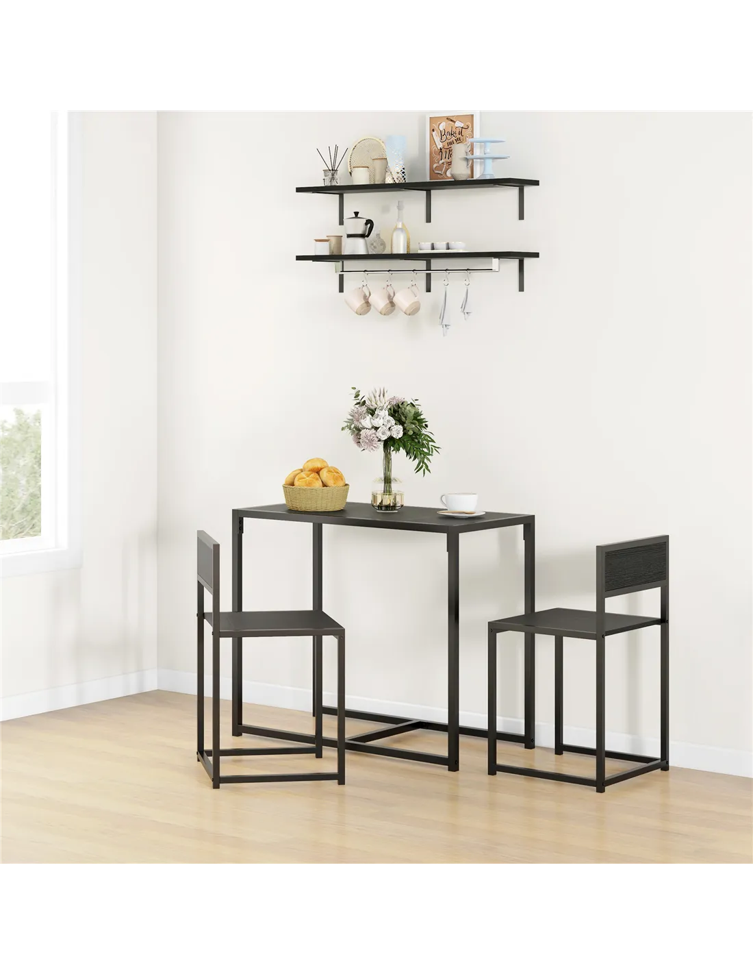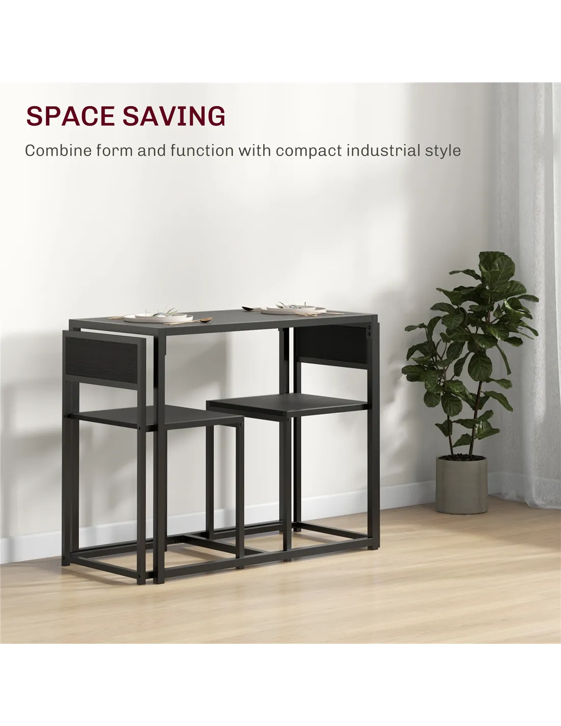 The HOMCOM dining set is an excellent choice for compact kitchens, breakfast nooks, or small dining areas where space is at a premium. Its sleek rectangular table and two stool-style chairs tuck neatly together, making it ideal for flats, studio apartments, or cosy dining corners. Use it as a stylish spot for morning coffee, casual meals, or intimate dinners. Thanks to its robust steel frame and easy-to-clean MDF surfaces, it also suits busy households seeking durable yet elegant furniture. This set complements modern, industrial, and minimalist interiors, adding a practical yet chic touch to your home.