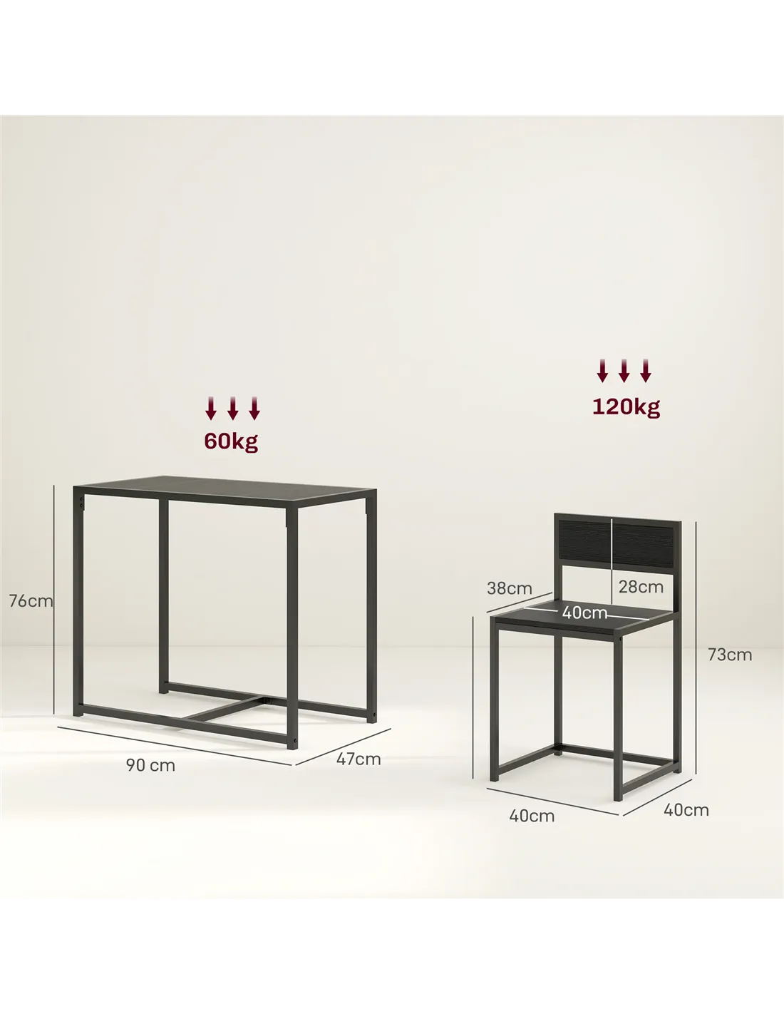 - Weight Capacity: 120 kg (Stool), 60 kg (Table)