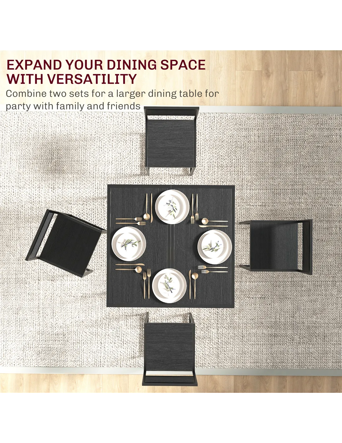 - Compact design, with the chairs tucking neatly under the table, helps save space