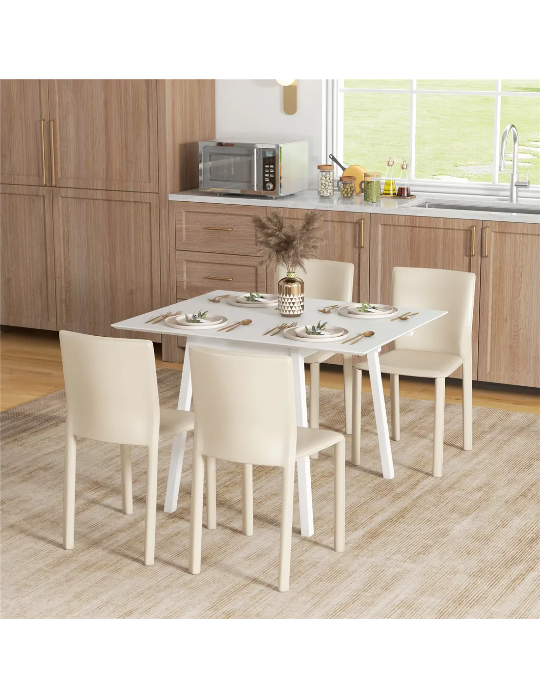 - Drop leaf design: extendable dining table, from a two-seater to four-seater