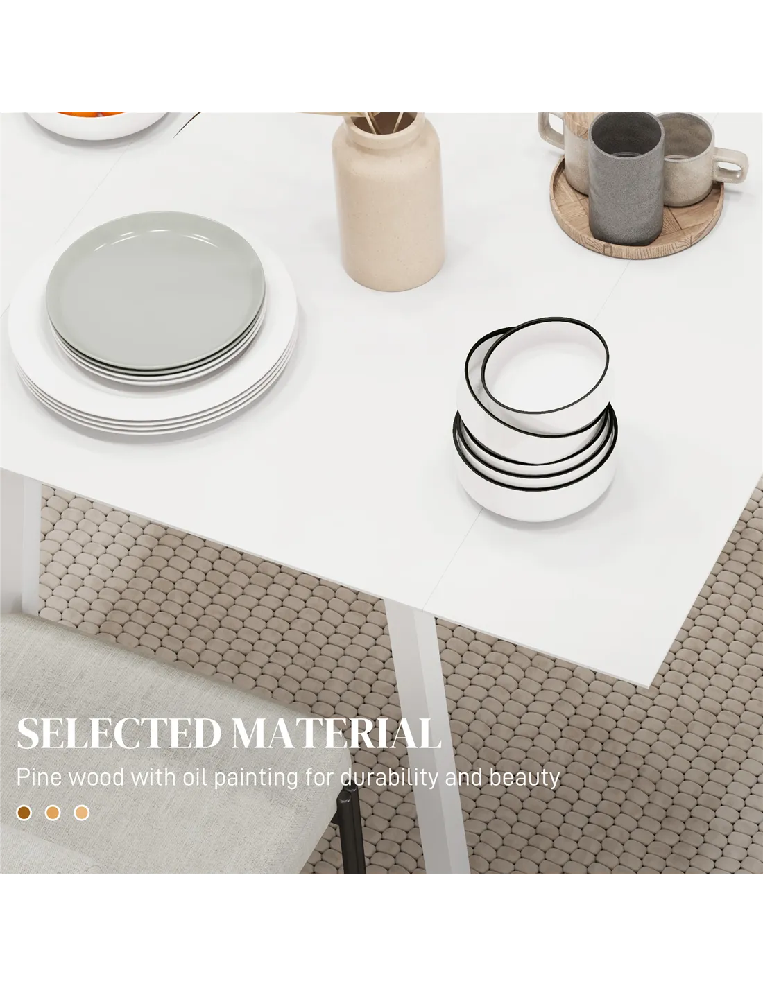 The HOMCOM folding dining table is ideal for compact living spaces, such as city flats, studio apartments, or cosy kitchens. Its drop leaf design allows you to effortlessly switch between a compact two-seater and a spacious four-seater, perfect for intimate dinners or casual gatherings. Place it against a wall when folded to save space, or extend it for family meals, homework sessions, or even as a versatile workspace. The white pine wood finish complements modern and minimalist interiors, blending seamlessly with various décor styles. Thanks to its sturdy construction and smooth oil paint coating, it’s suitable for everyday use in dining areas, breakfast nooks, or even as an occasional table in guest rooms.