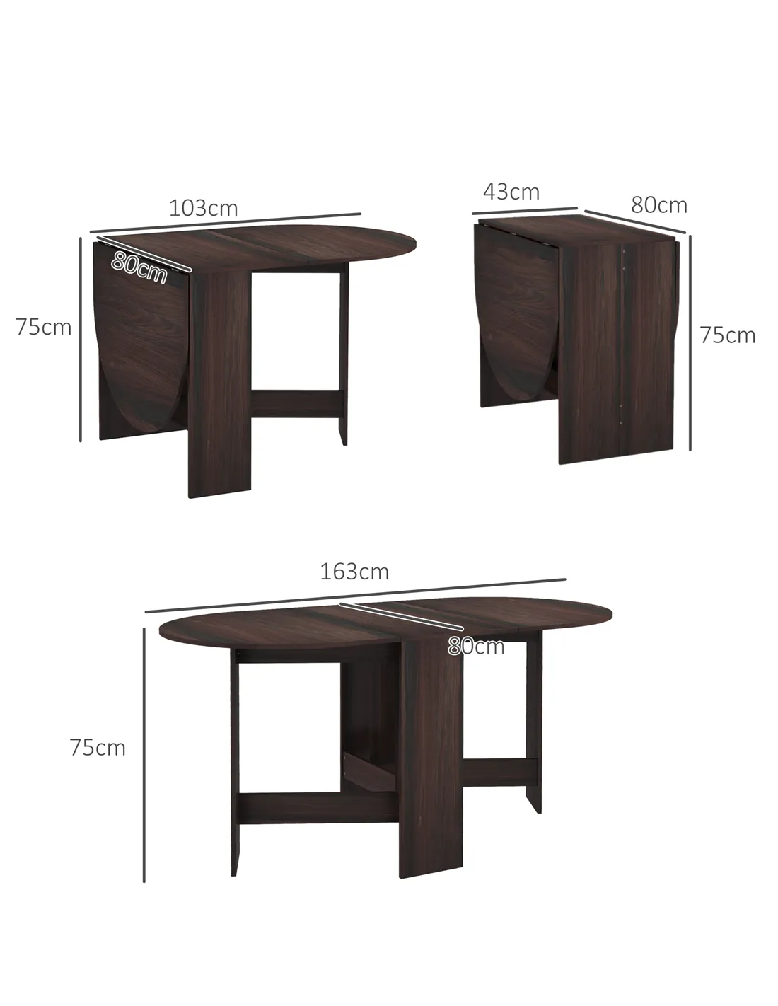 HOMCOM Folding Dining Table, Drop Leaf Table for Small Spaces, Oval Tabletop for Dining Room, Chocolate Wood Effect