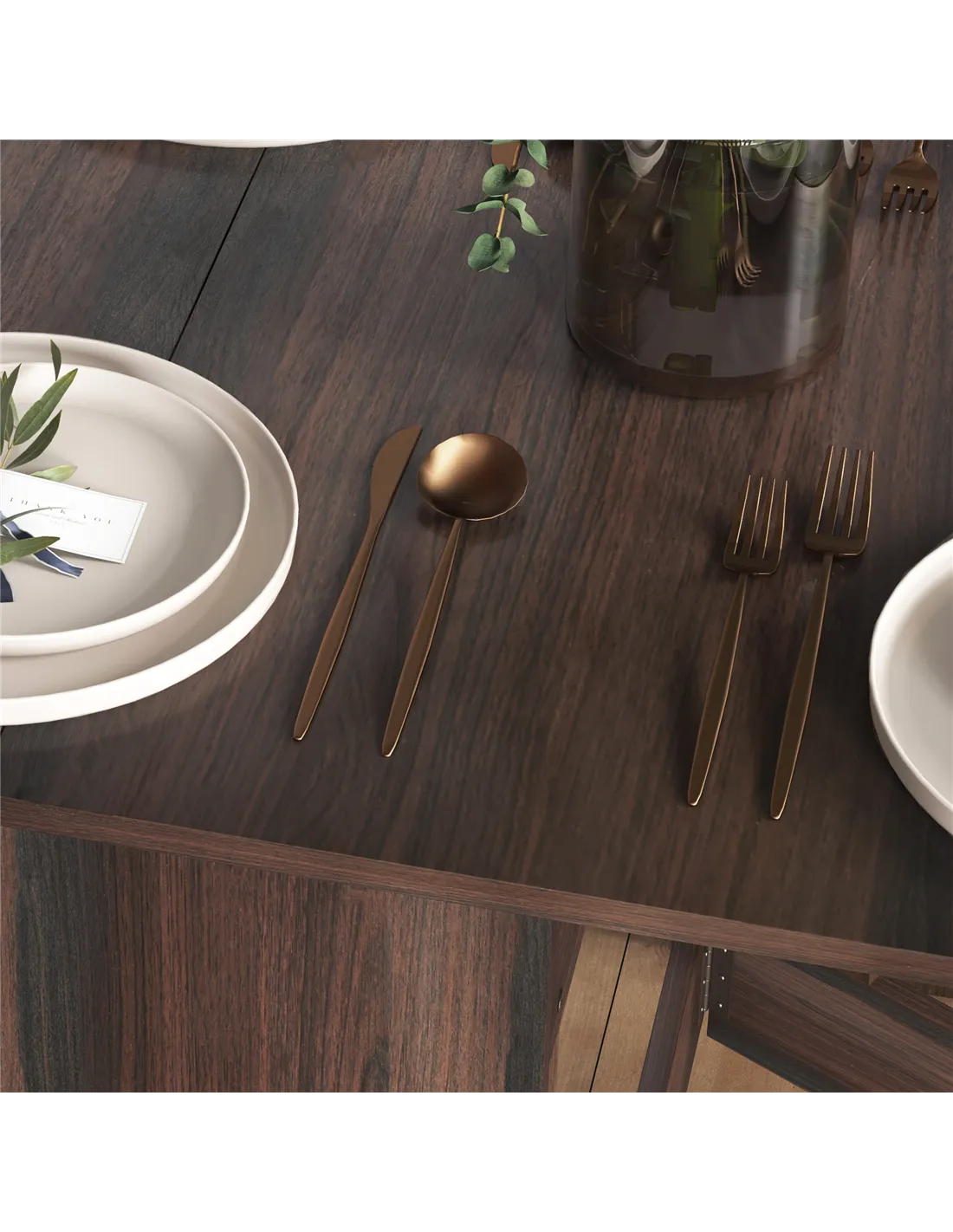 - Its elegant chocolate wood effect finish complements a variety of interior styles, adding warmth and character to your dining room or living space.