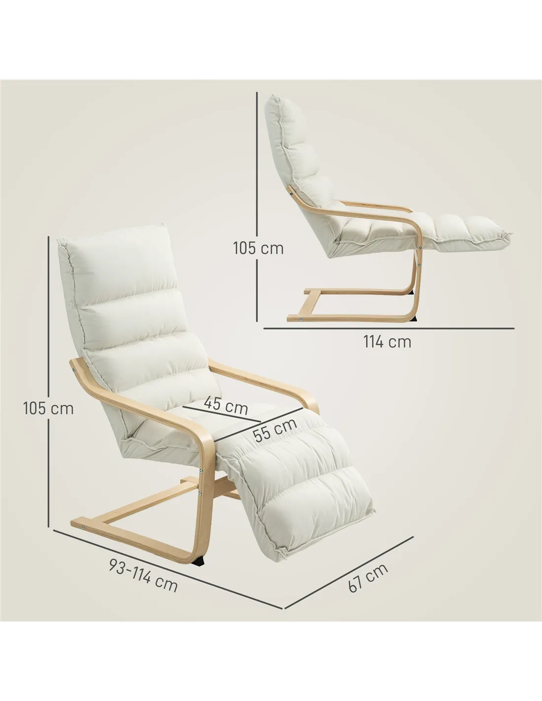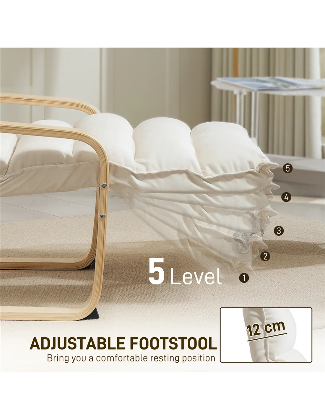 HOMCOM Curved Wooden Accent Chair, with Adjustable Footrest - Cream White