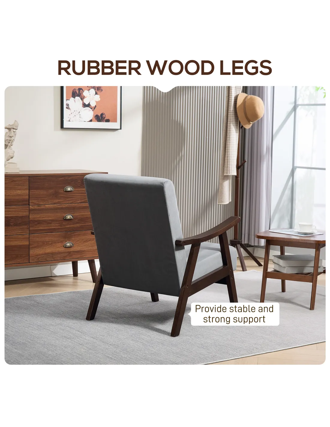 HOMCOM Nordic Accent Chair, Upholstered Velvet Armchair with Solid Wood Frame and Soft Thick Padded for Living Room, Bedroom, Grey