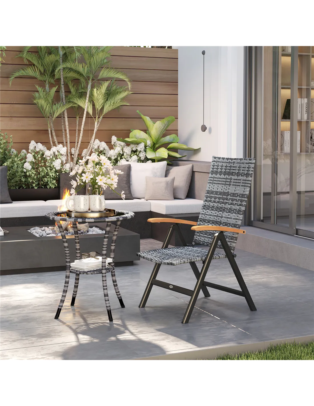 Outsunny Folding Rattan Garden Dining Chair with 5-level Reclining High Back, Wood Armrests for Outdoor, Patio - Light Grey