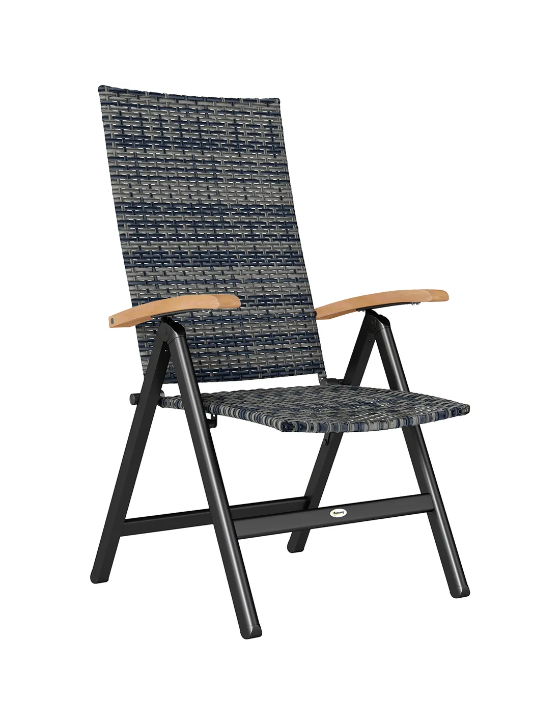 The seat for summer - this Outsunny rattan garden chair. With a powder coated steel frame, this rattan armchair has a strong and supportive core, for as long as you sit. Five-position adjustable backrest lets you relax at an optimal angle. Both the seat and back panel are made from plastic rattan: stylish, robust and keeps you seated properly in place. The wooden armrests allow you to hold your arms in a comfortable position. When done, simply fold away and store.