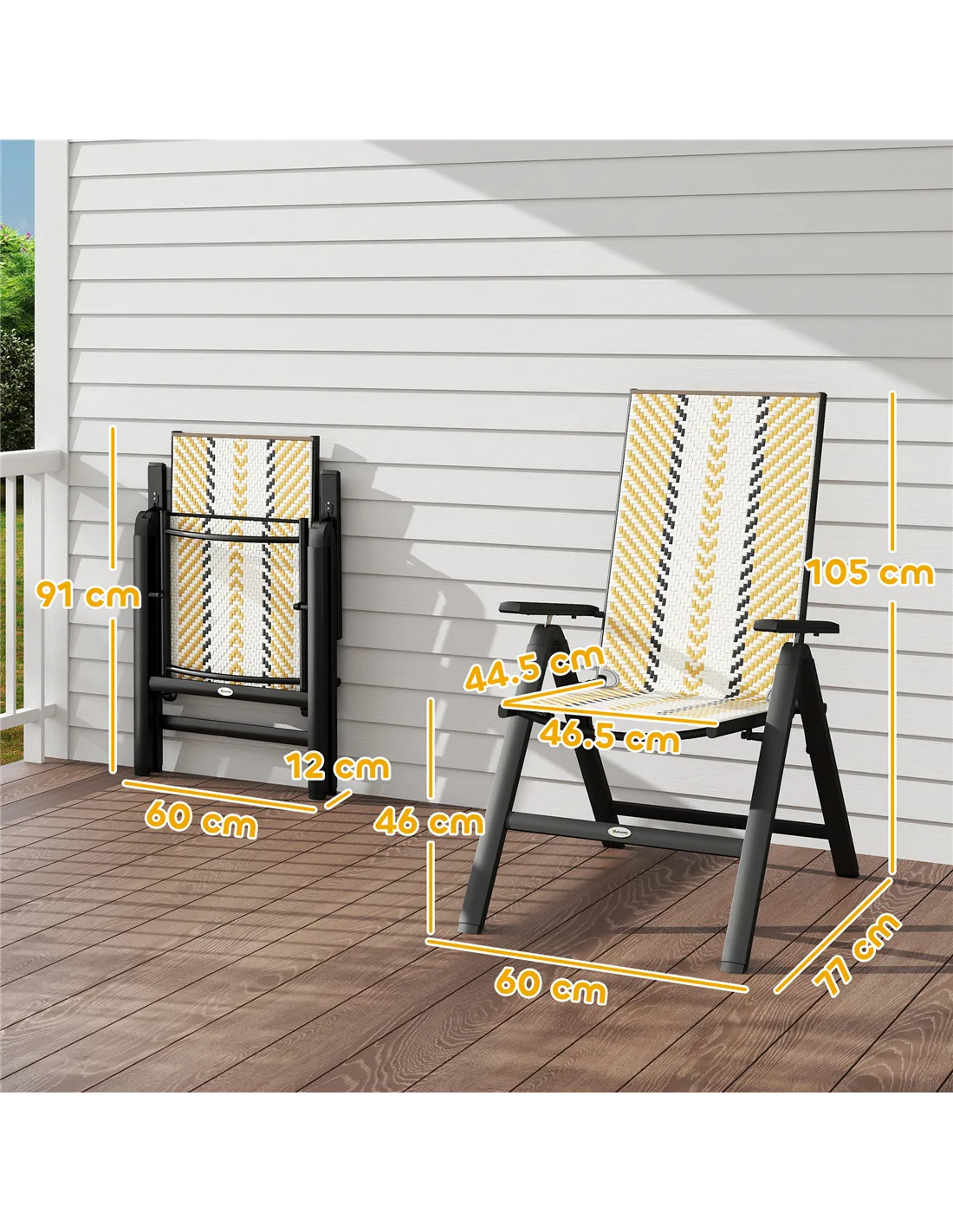 Unfold and relax with these two Outsunny folding garden chairs. Both have five adjustable back positions, so you can lie back to the position you want. The hand-woven plastic wicker seats create a stylish and beautiful rattan look. The foldable design makes it easy to store away and bring out, whenever you want.