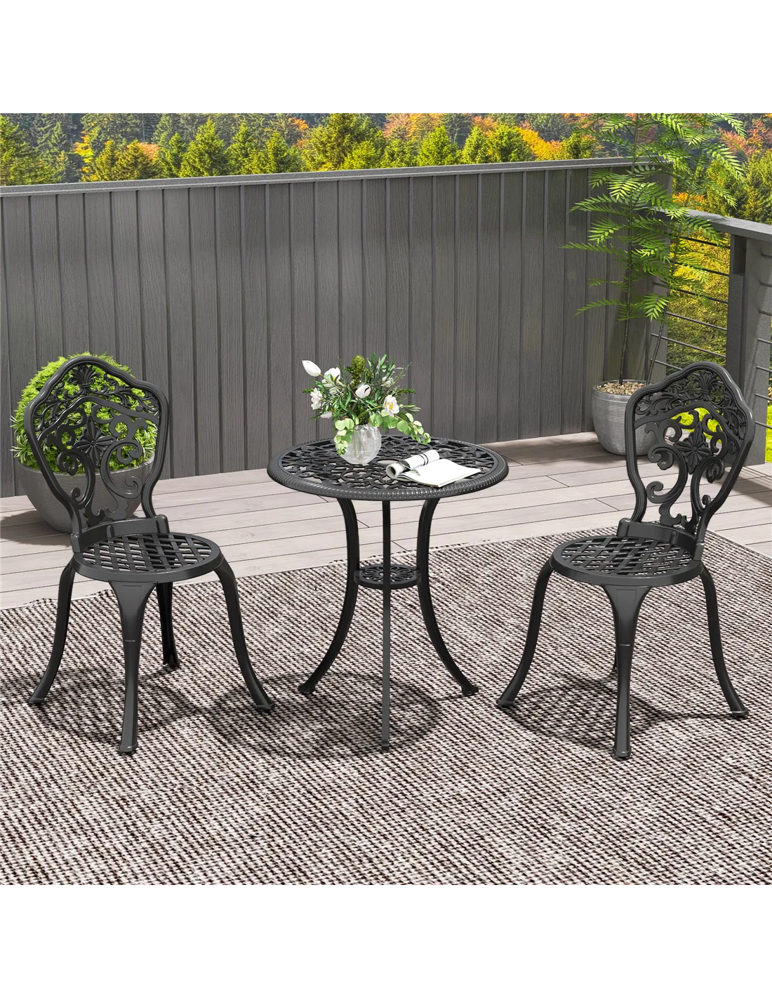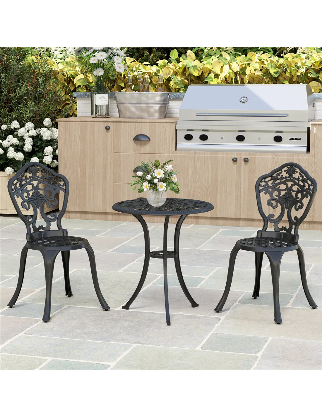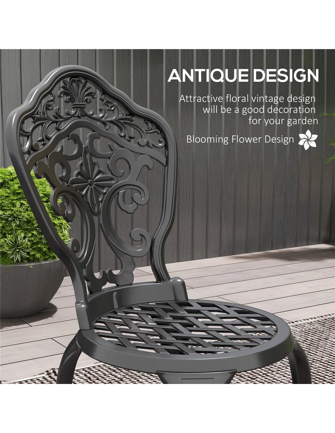 Outsunny Three-Piece Aluminium Floral Bistro Set - Black