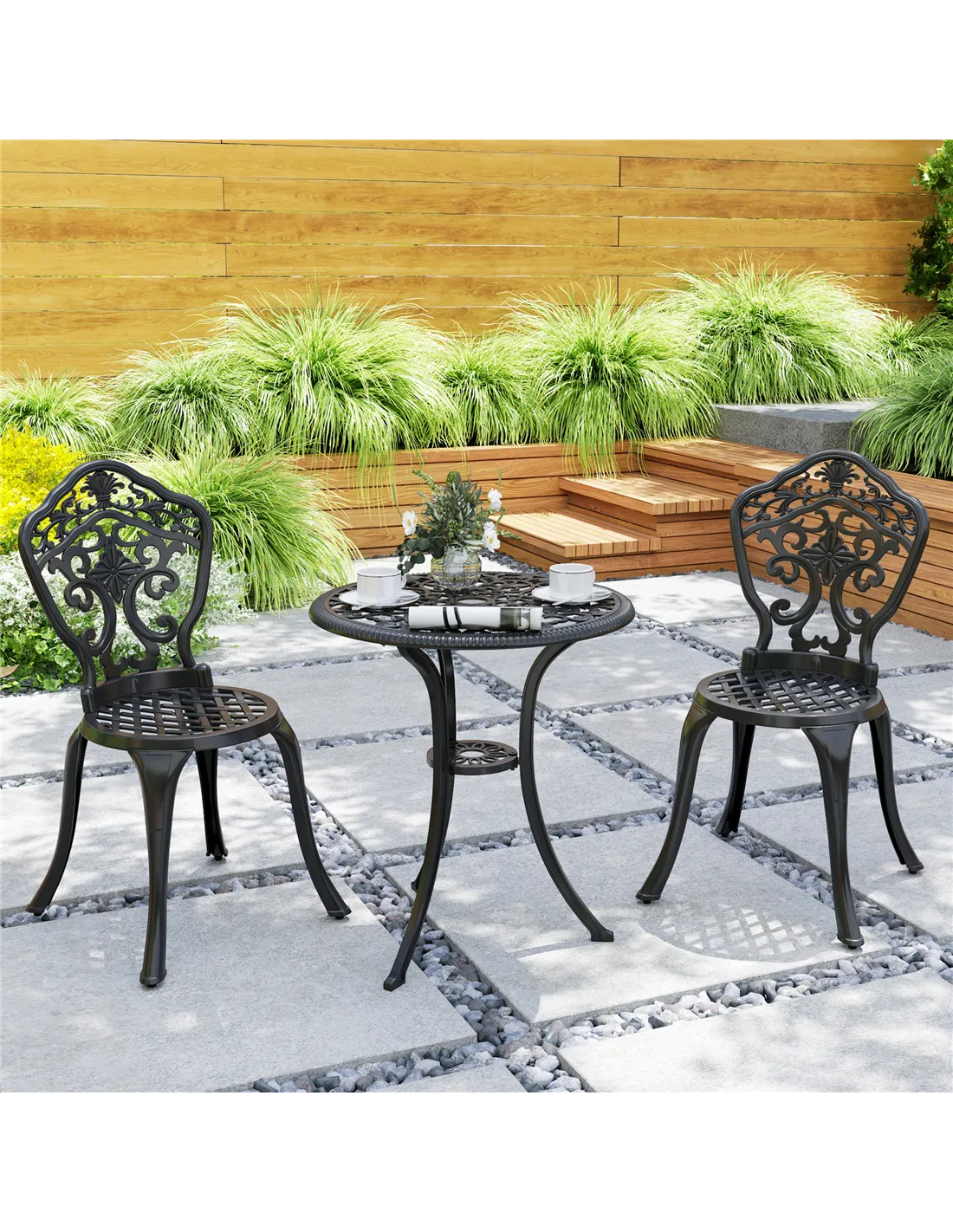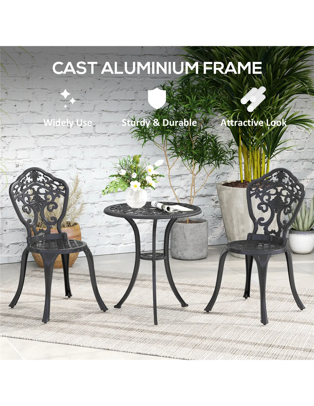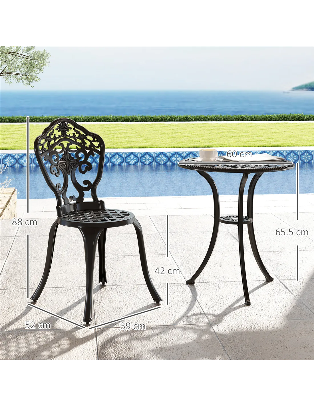 Outsunny Three-Piece Aluminium Floral Bistro Set - Black