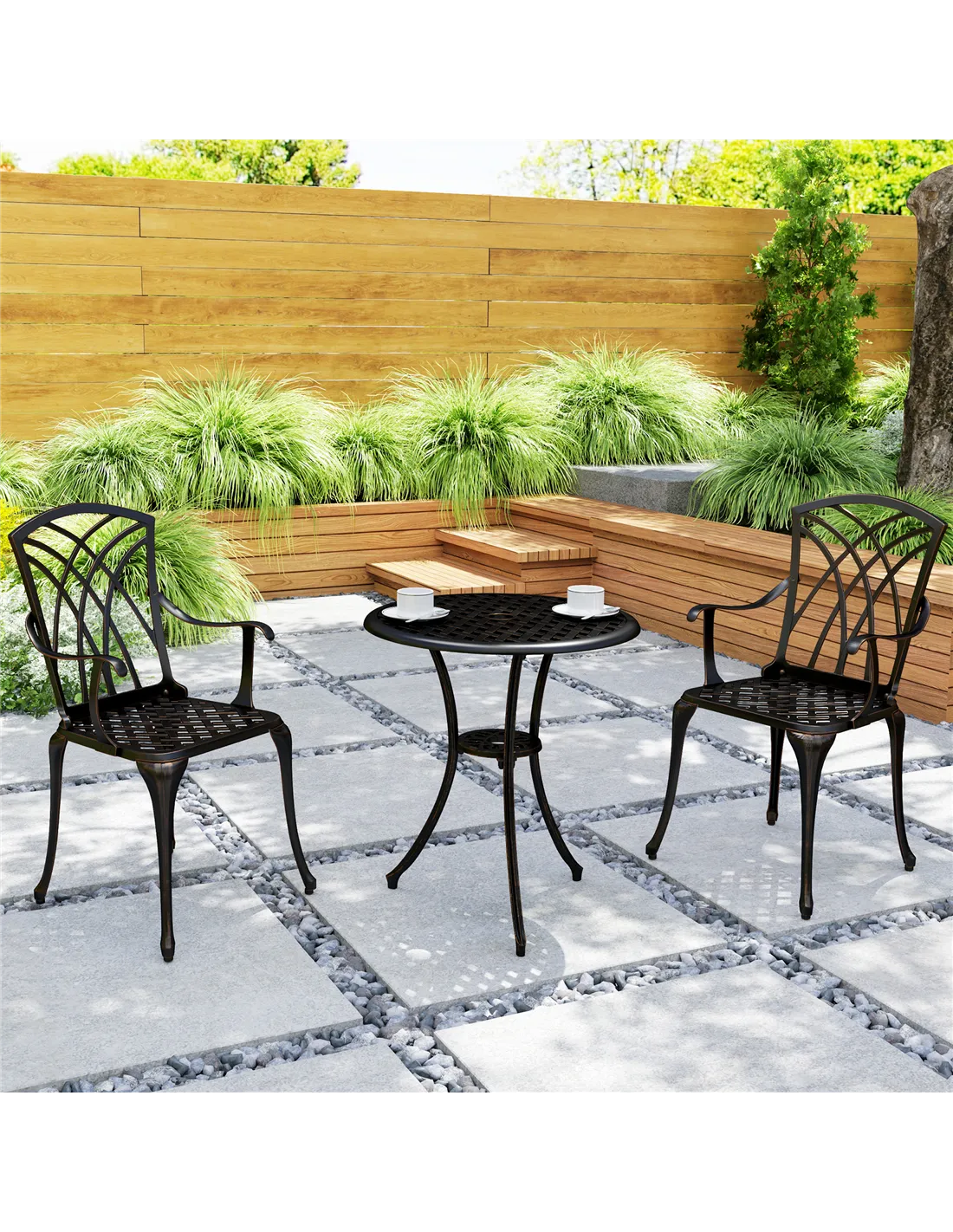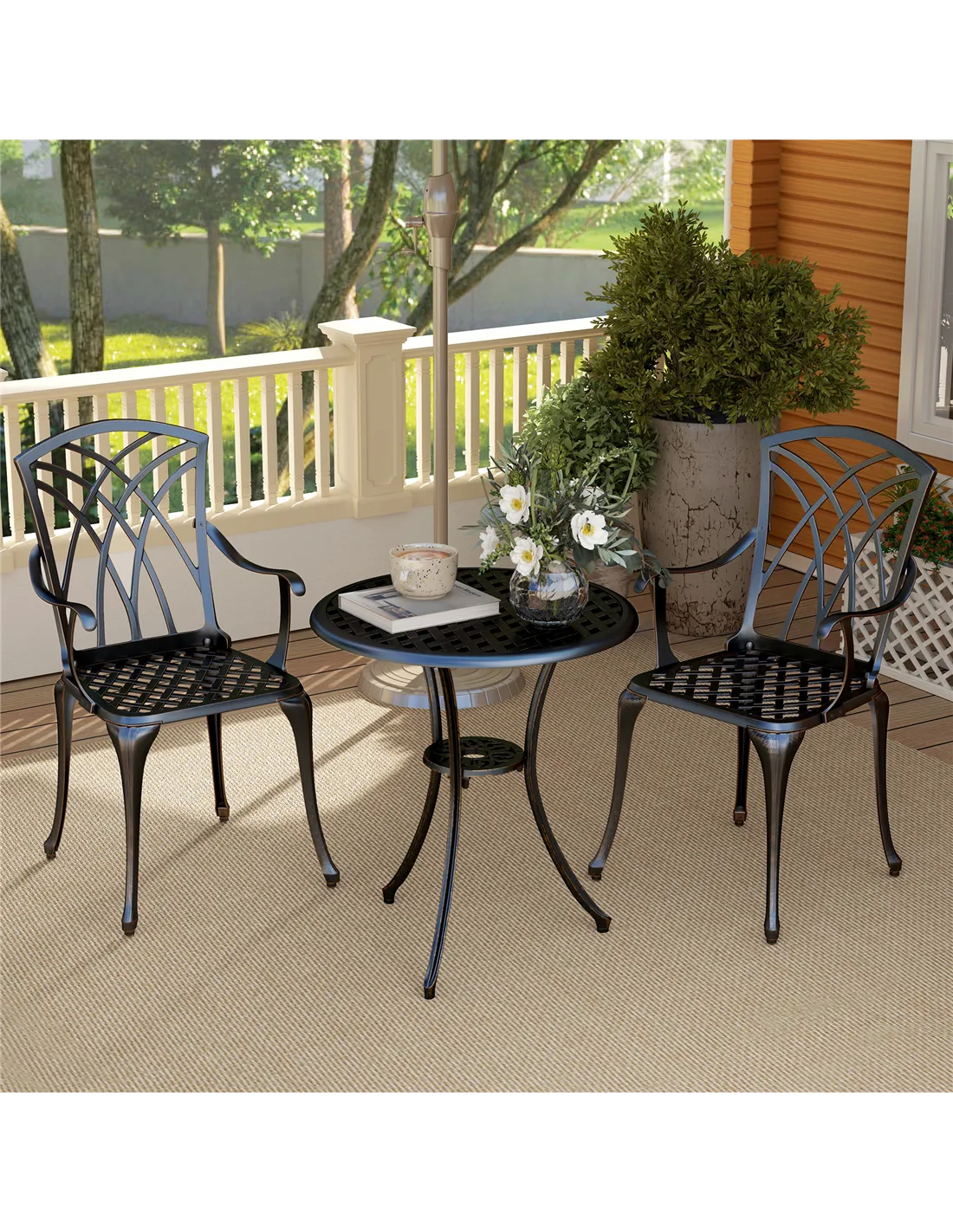 Outsunny 3 Pieces Garden Dining Set for 2, Cast Aluminium Outdoor Dining Set with 2 Armchairs and Round Dining Table with Parasol Hole, Garden Furniture Set, Bronze Tone