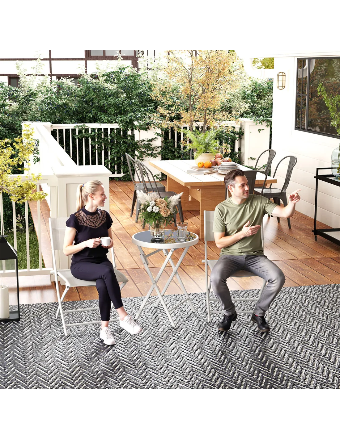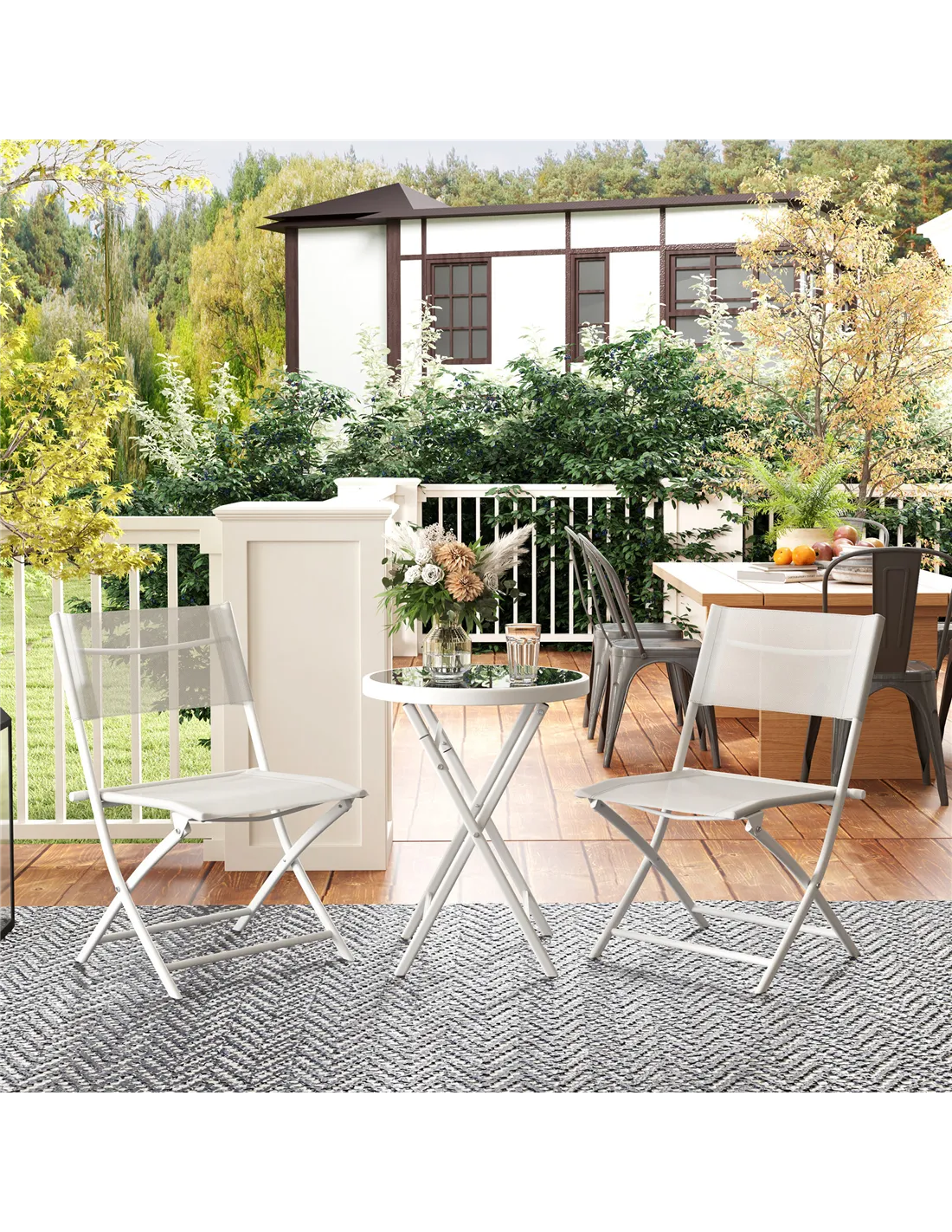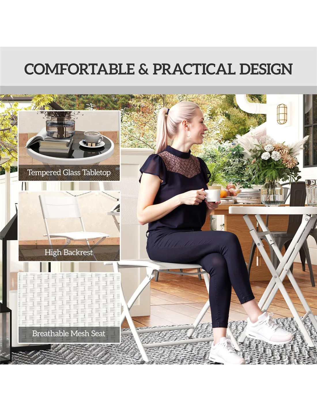 Outsunny 3 Pieces Outdoor Bistro Set, Glass Top Outdoor Table and 2 Folding Chairs with Protecting Feet, White