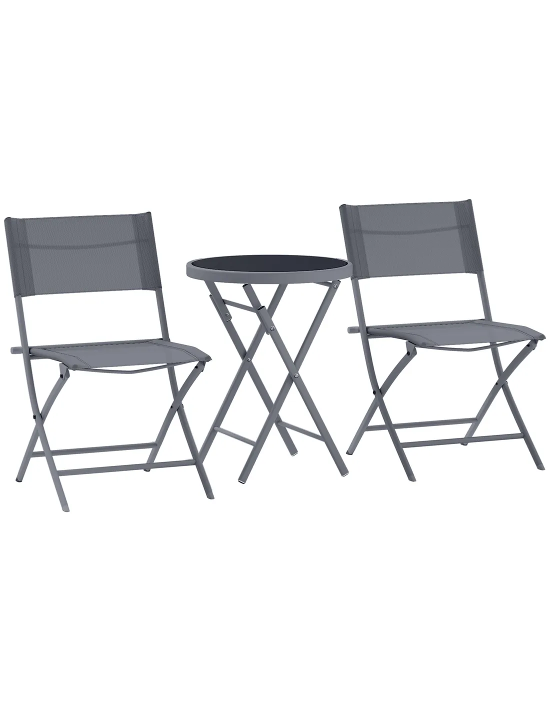 Discover the charm of the Outsunny Outdoor Bistro Set, a delightful addition to any garden or patio. This three-piece patio set, including two chairs and a table, folds away for effortless storage. Crafted with a steel frame and breathable mesh fabric, it ensures comfort and style with its sleek tempered glass tabletop. Suitable for any garden, balcony setting.