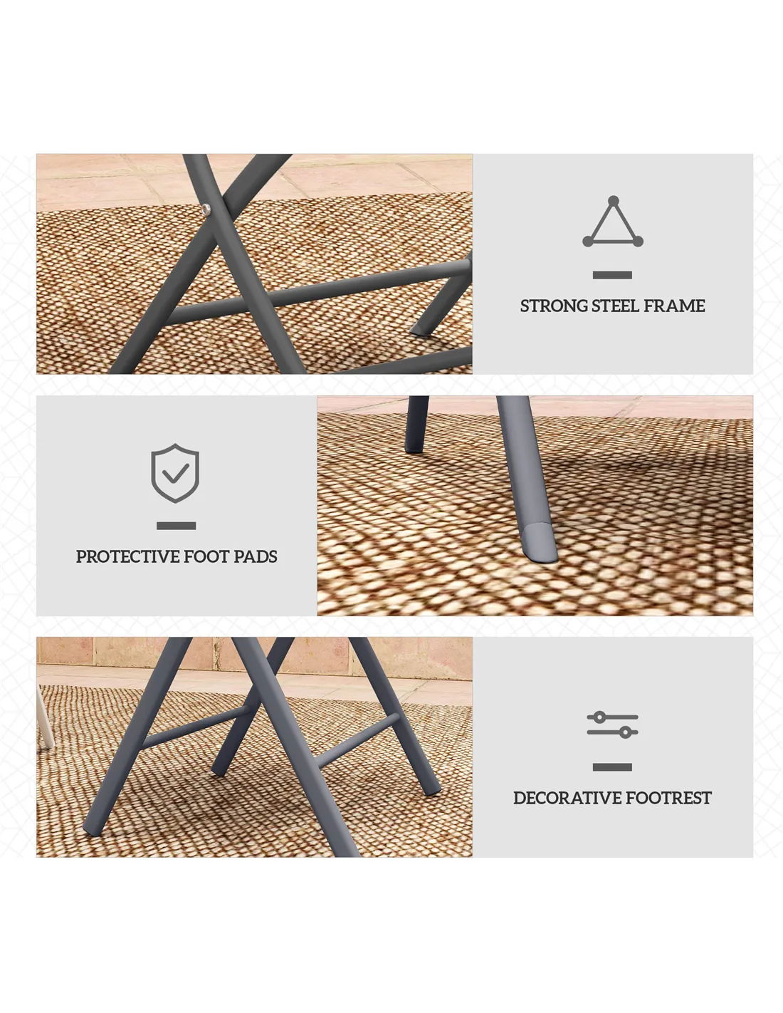 Based on reviews from UK customers, the Outsunny bistro set is praised for its sturdy construction and stylish appearance. Many highlight the ease of folding and storing the chairs and table, which is especially valued in smaller homes. Users appreciate the comfortable mesh seating and the low-maintenance glass surface that cleans effortlessly. The protective foot pads receive positive mentions for preserving outdoor flooring. Overall, buyers commend the set for offering excellent value and durability, reflecting the trusted quality of the Outsunny brand, a recognised name in garden and outdoor furniture across the UK since 2012.