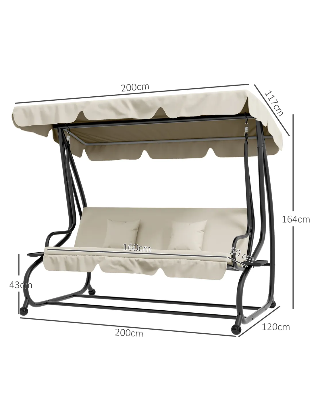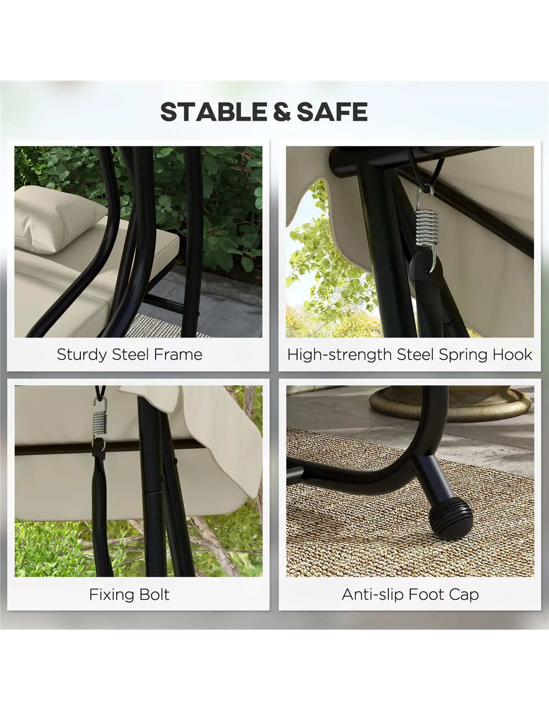 Outsunny Convertible Three-Seater Swing Chair Bed - Cream