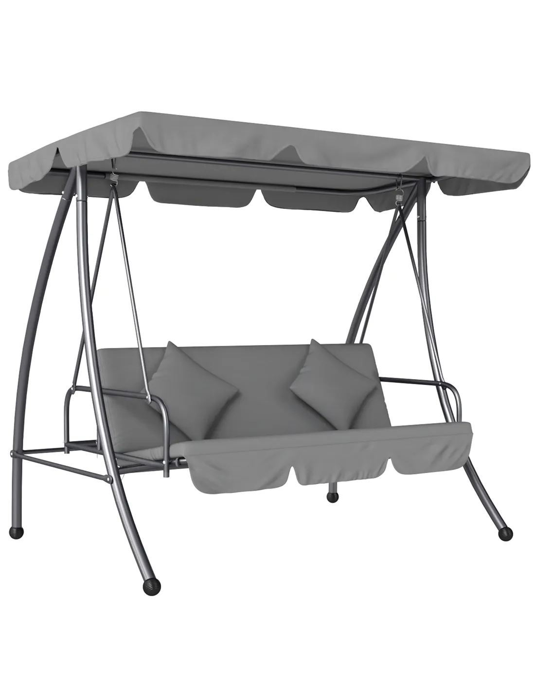 Make the most of the sunny days with this 2-in-1 convertible outdoor swing chair from Outsunny. Big enough to fit three people, 3 seater garden swing easily converts into a bed with an adjustable backrest to suit you and a canopy to protect you from hot sun. Garden swings for adults sit on a steel frame for stability and reliability. With two pillows supplied to provide even more comfort, there's no better way to enjoy to sit down and relax as the sun shines on a hot summers day.