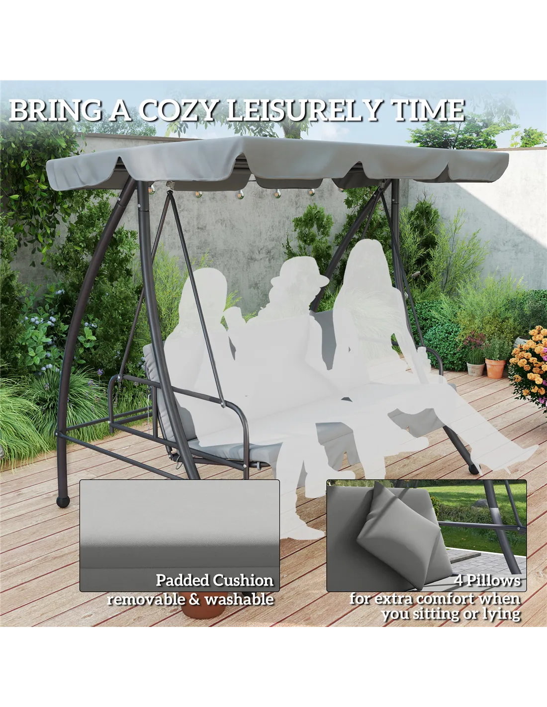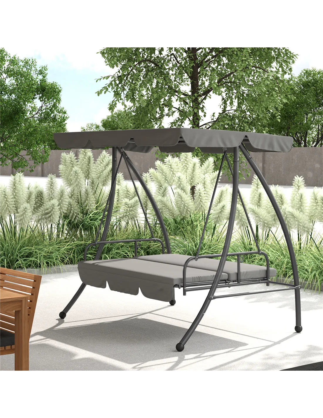 Outsunny Outdoor 2-in-1 Swing Chair Lounger 3 Seater Garden Swing Seat Bed Convertible Tilt Canopy W/ Cushion, Light Grey