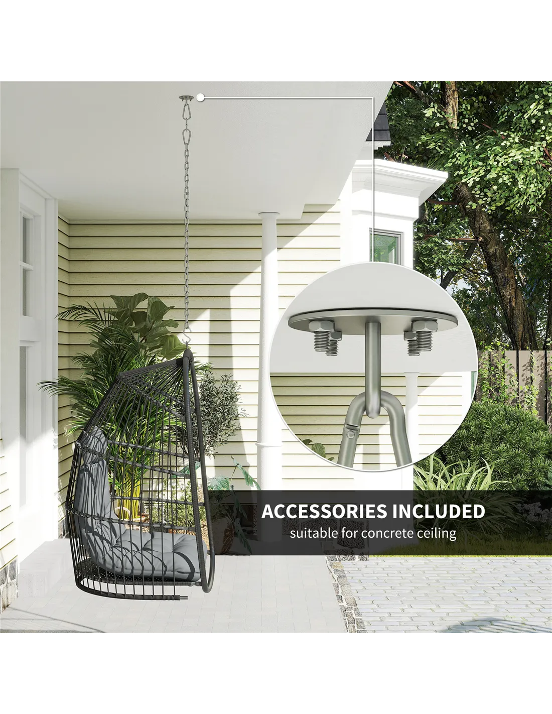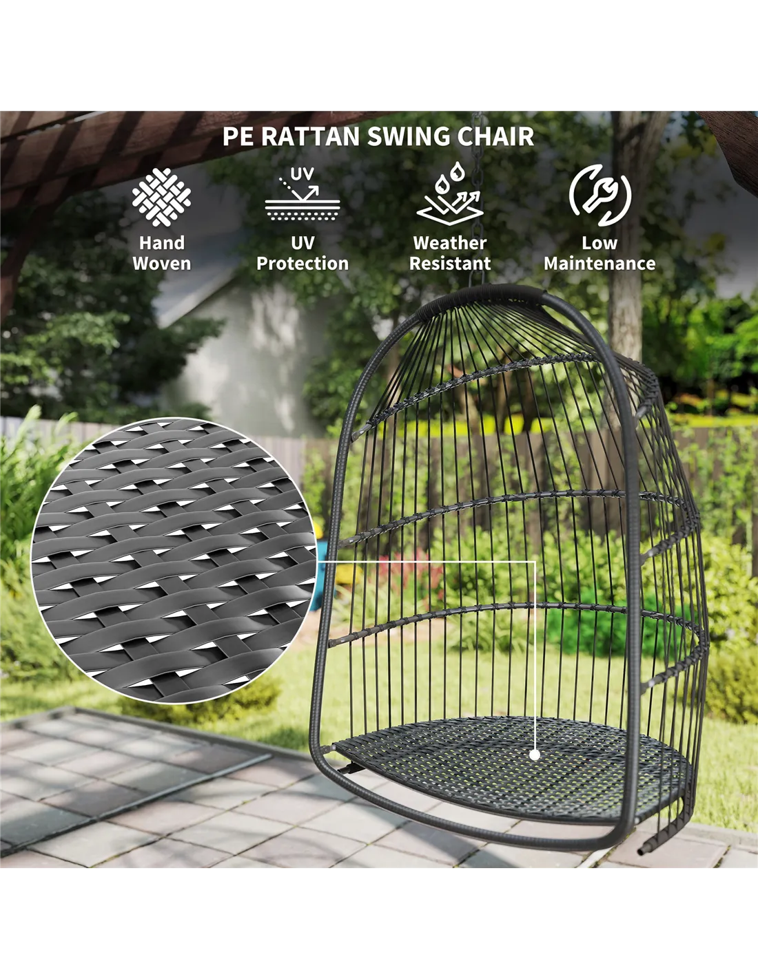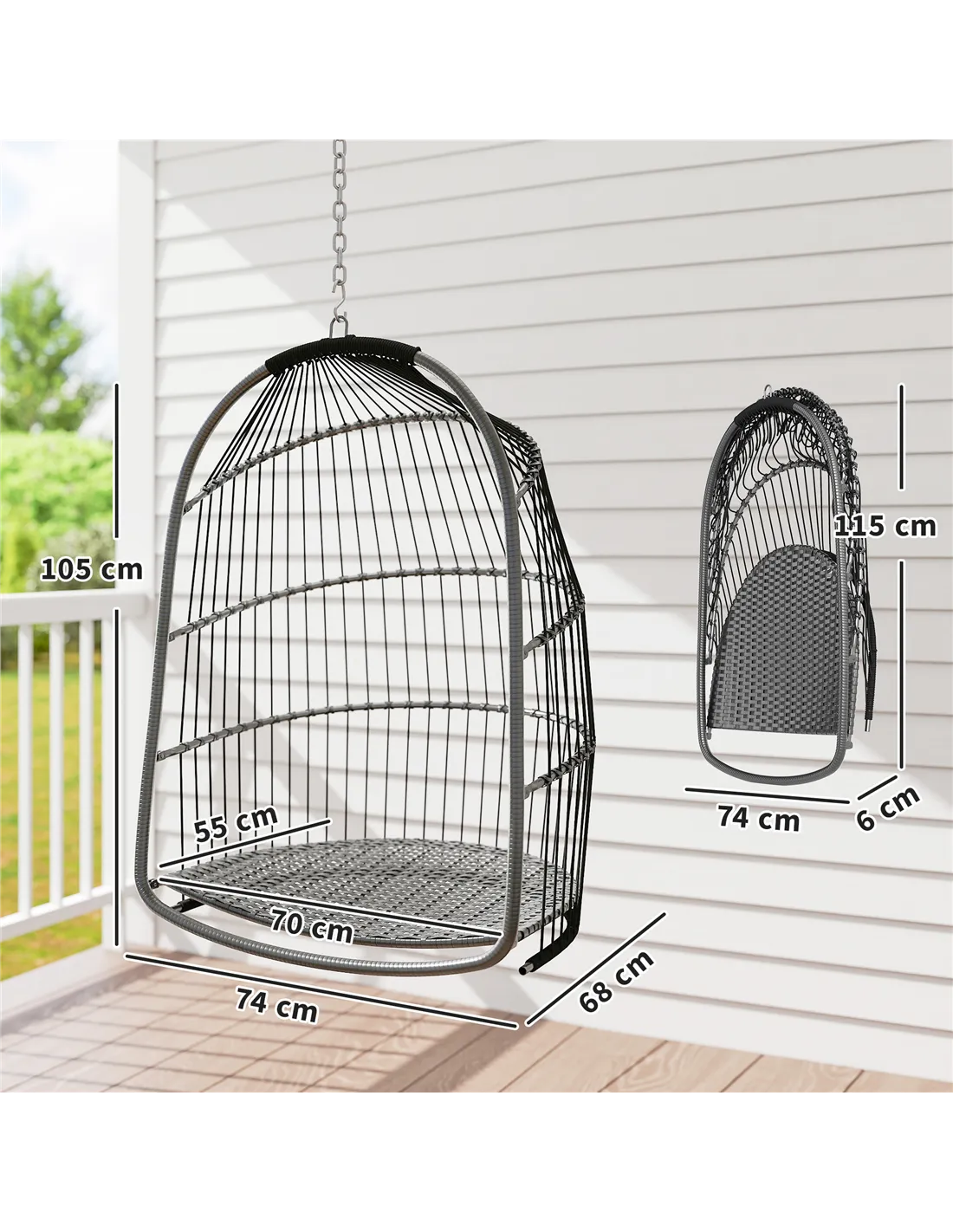Escape into comfort with the Outsunny rope-weaving outdoor egg chair. The curved back, spacious seat and thickened padded cushion make this a comfortable egg swing chair to relax in whenever you want. A steel frame wrapped in tough plastic rattan makes it an excellent addition to your garden. The seat basket can be taken off the frame and folded up - so when the sunny season is over, or you want to change up your outdoor space, you can store this outdoor swing chair away easily.