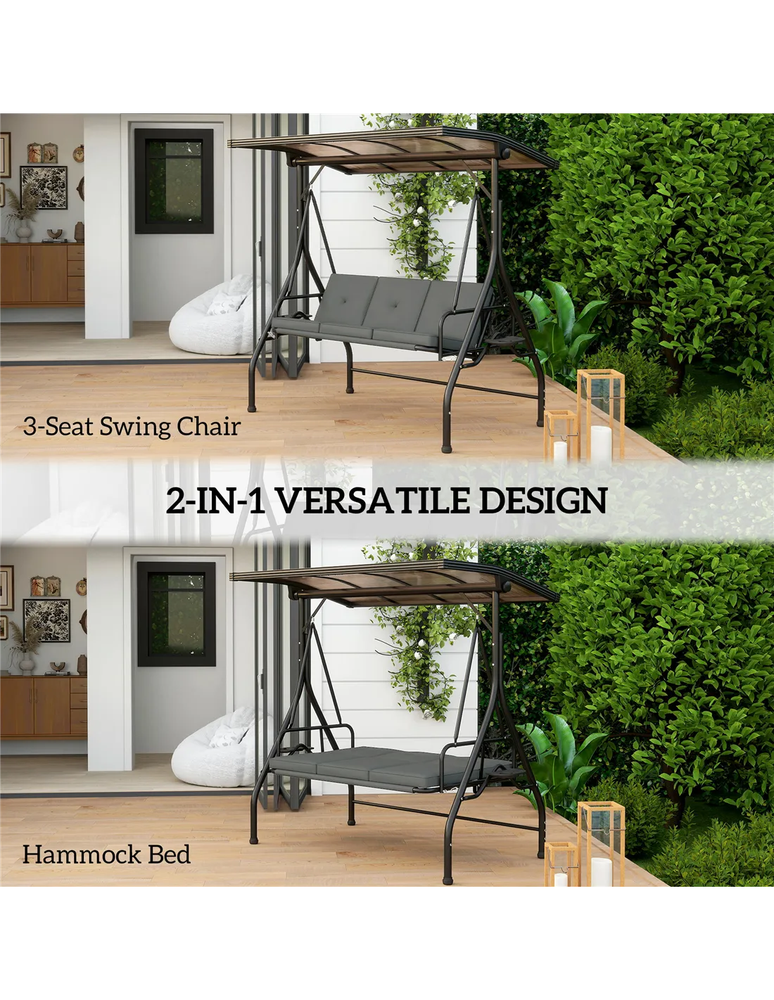 Outsunny Convertible Three-Seater Swing Bench Bed - Dark Grey