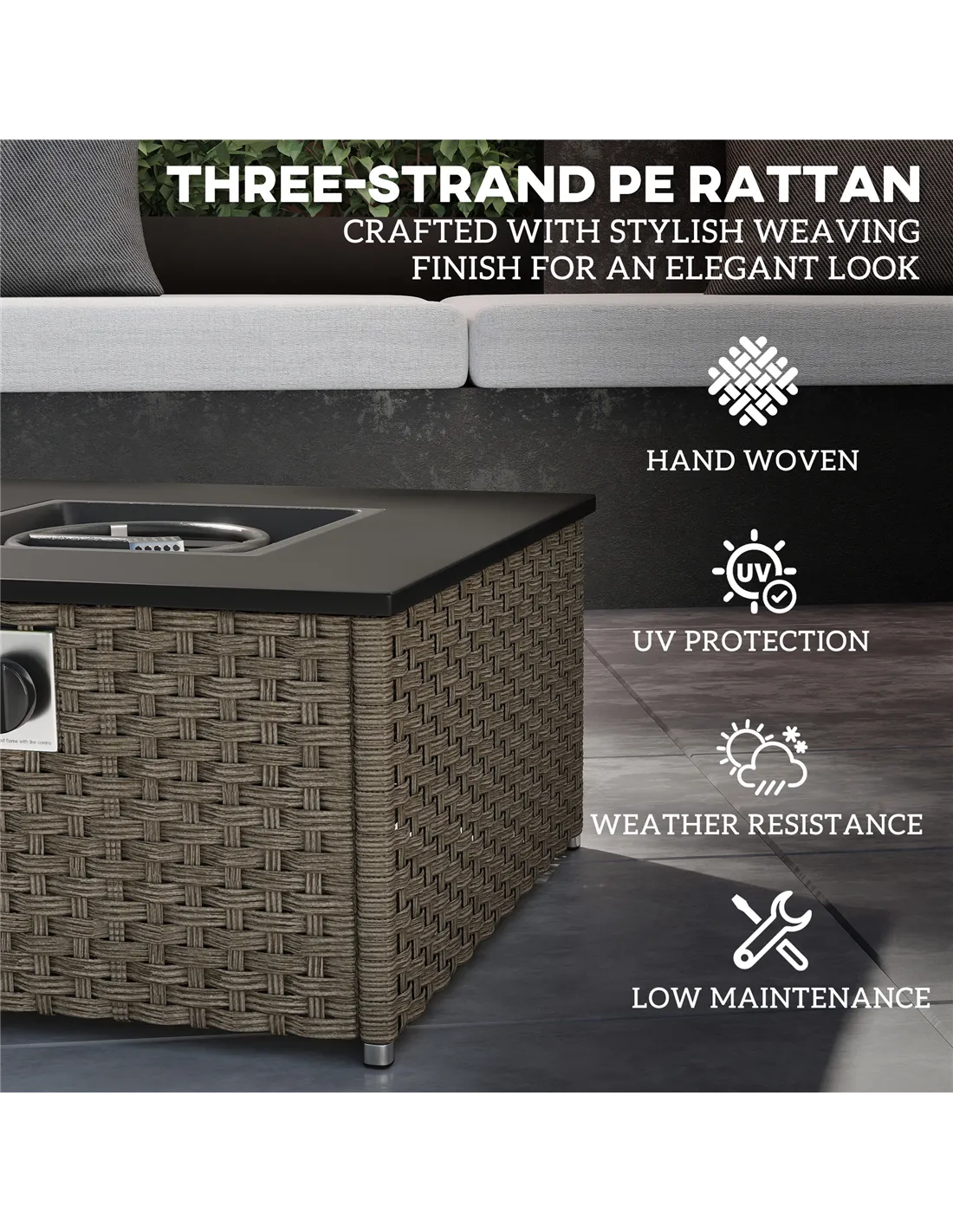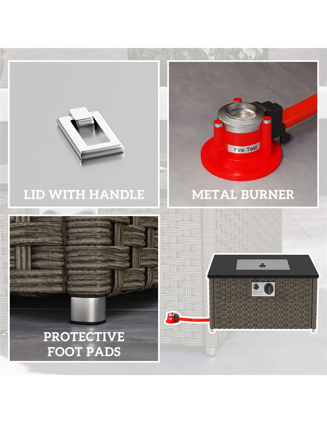 A place to keep warm when sitting with company and a place to enjoy garden warmth and ambiance all year-round: this Outsunny rattan fire pit table. The electric ignition system makes it easy to light, powered by LPG or propane gas. The garden table with fire pit featuring a 13 KW burner is powerful and produces a clean smokeless burn. Complete with a thermocouple to close the valve if the flame goes out for safety - no leaking gas.